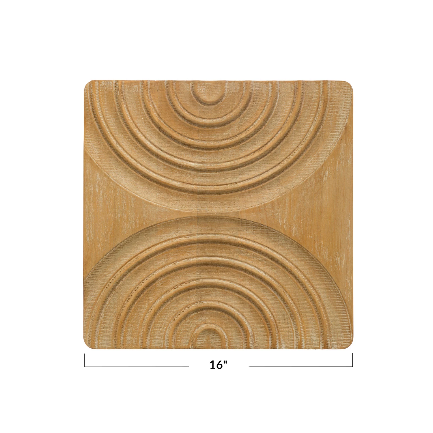Catalog Name: 16" Square Carved Pine Wood Wall Décor w/ Arches, Natural