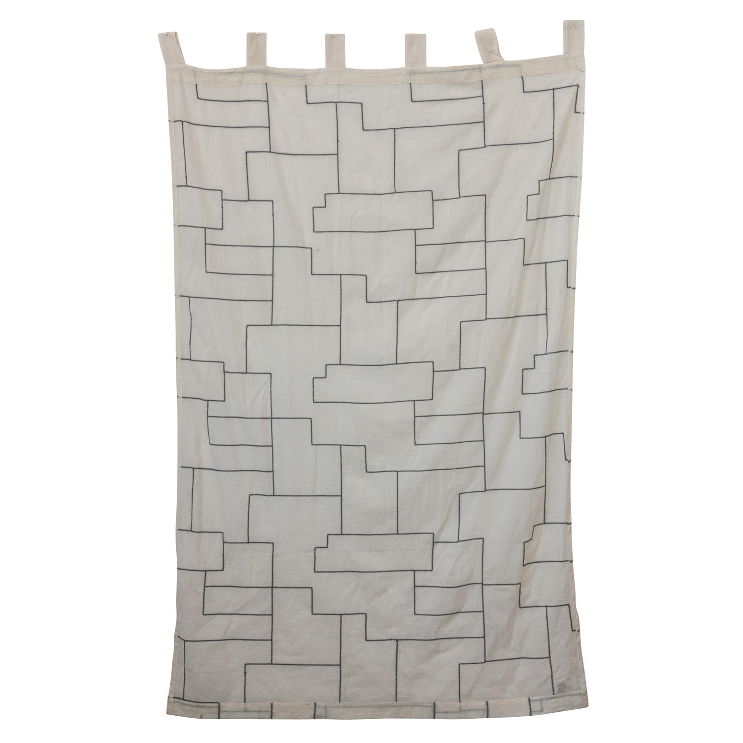 Cotton & Linen Panel w/ Embroidered Block Pattern, Natural & Black