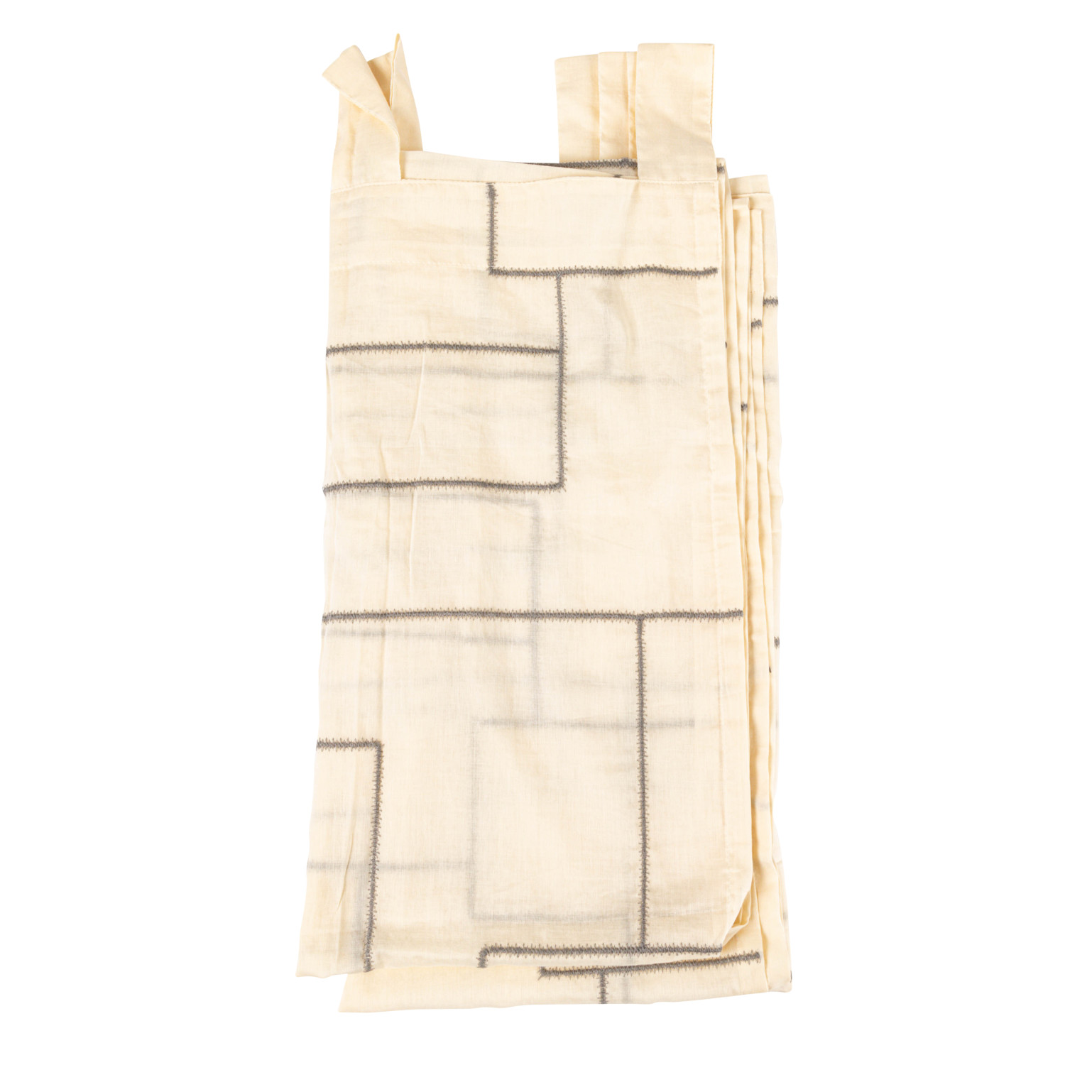 Catalog Name: 45"W x 84"H Cotton & Linen Panel w/ Embroidered Block Pattern, Natural & Grey