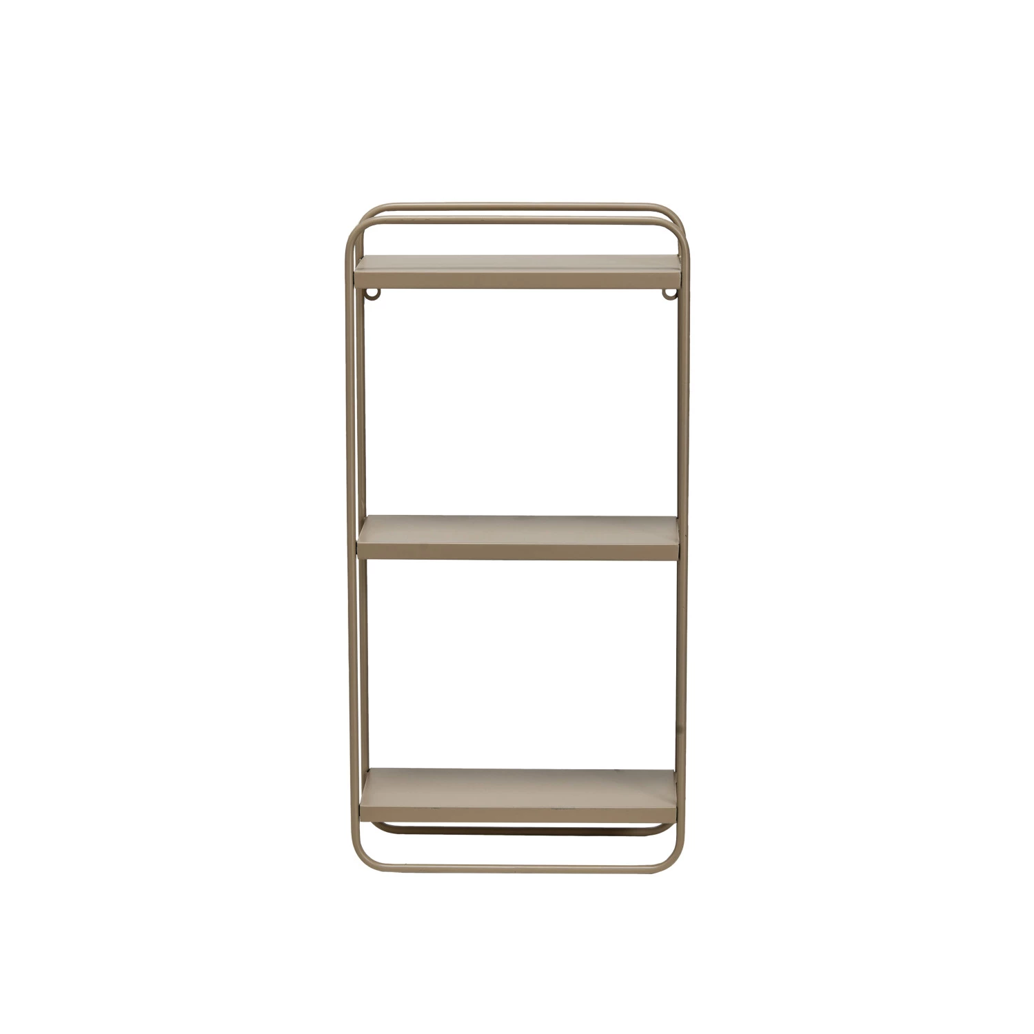 Elevate the walls with this chic Metal Wall Shelf, boasting a luxurious matte nude finish. Three generously sized shelves, perfectly spaced for highlighting decorative items, toiletries, or novels, offer both style and functionality. Crafted from sturdy metal for lasting durability, this shelf arrives fully assembled, ready to add a touch of sophisticated elegance to any space. Measuring 12 inches long, 5 inches wide, and 24 inches high, its versatility allows it to seamlessly blend with modern or minimalist interiors. Hang it in the living room to display artwork and photos, utilize it in the bathroom for neatly organized toiletries, or let it grace the entryway with a welcoming display. This versatile shelf is the perfect finishing touch to add a touch of modern organization and understated luxury to any room.