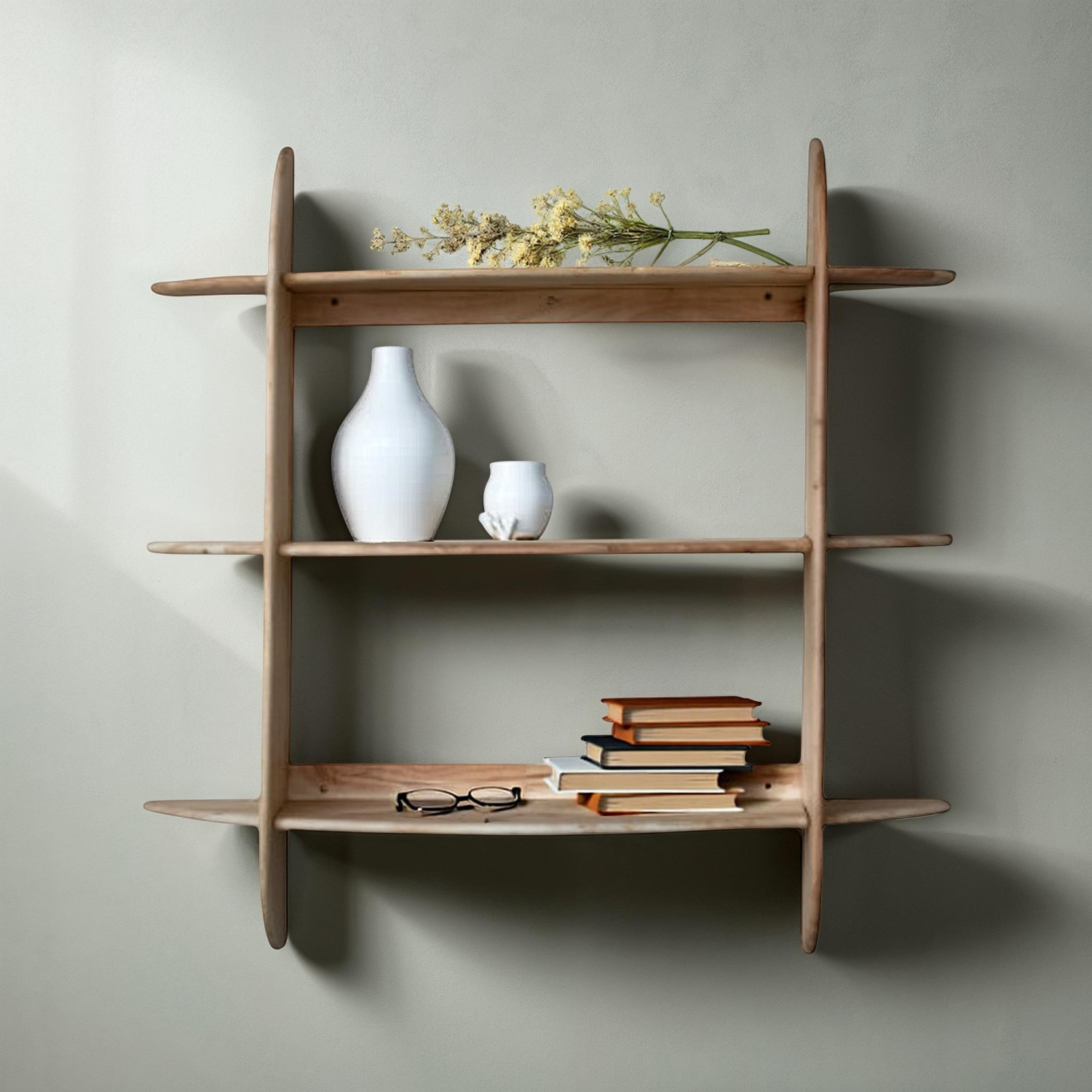 Acacia Wood & Metal Interlocking Wall Shelf with 3 Shelves, KD