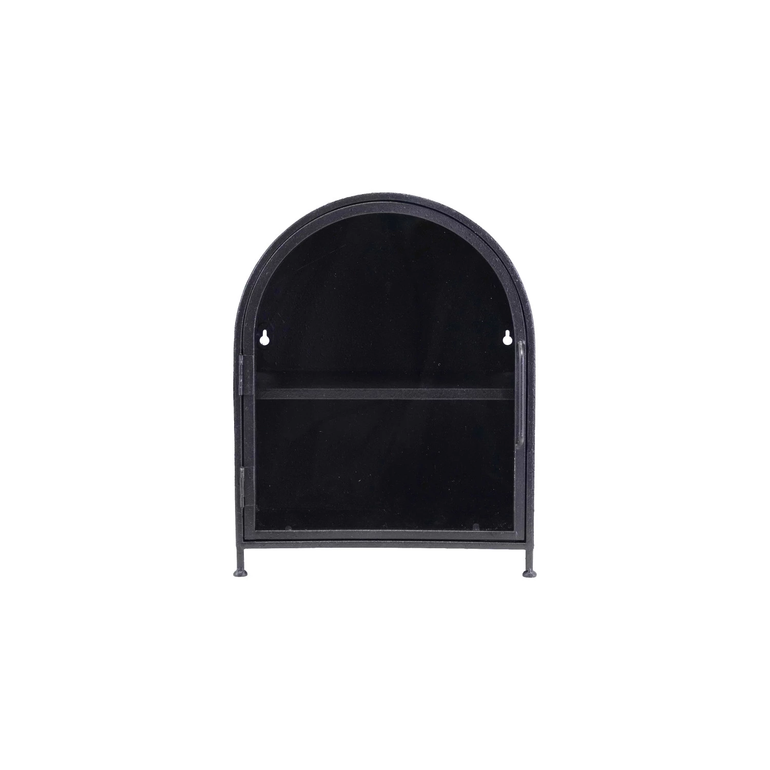 Catalog Name: 11-1/4"W x 6-3/4"D x 14"H Textured Metal Wall Cabinet w/ Shelf & Glass Door, Black (Hangs or Sits)
