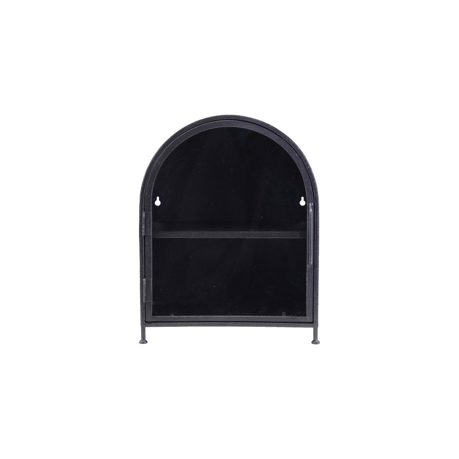 Catalog Name: 11-1/4"W x 6-3/4"D x 14"H Textured Metal Wall Cabinet w/ Shelf & Glass Door, Black (Hangs or Sits)