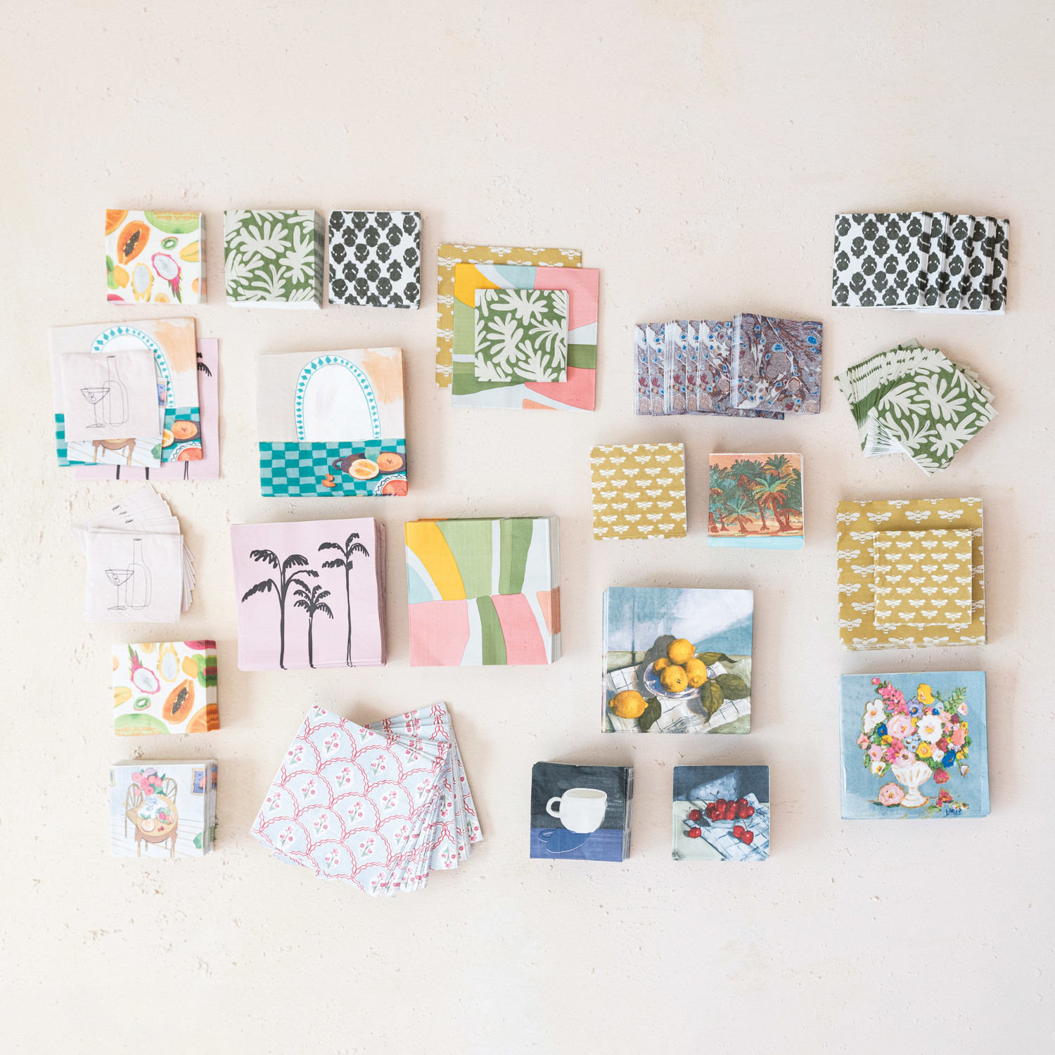 Catalog Name: 4" Square Paper Cocktail Napkins w/ Dining Table, Multi Color (Contains 50 Folded Pieces)