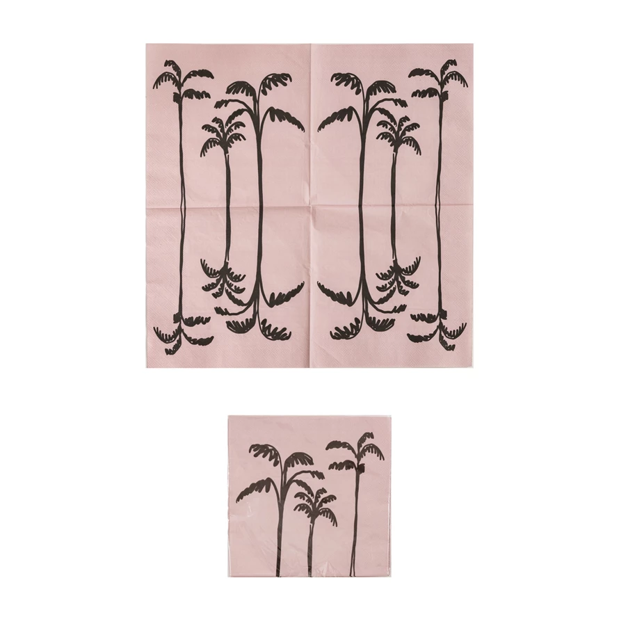 Catalog Name: 6-1/2" Square Paper Napkins w/ Palm Trees, Pink & Black (Contains 50 Folded Pieces)