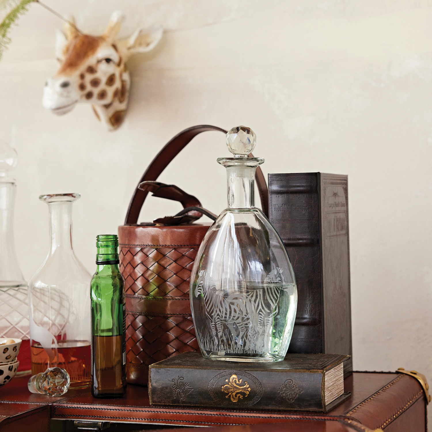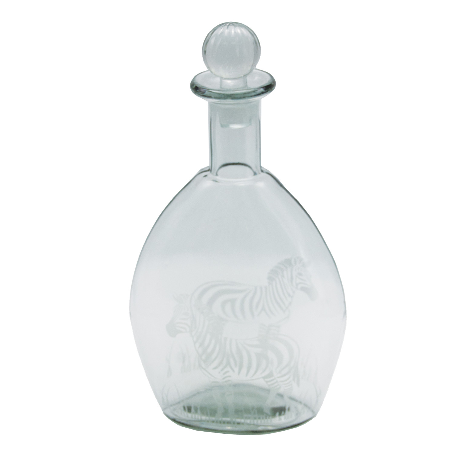 1 Quart Etched Glass Decanter with Zebras & Glass Stopper