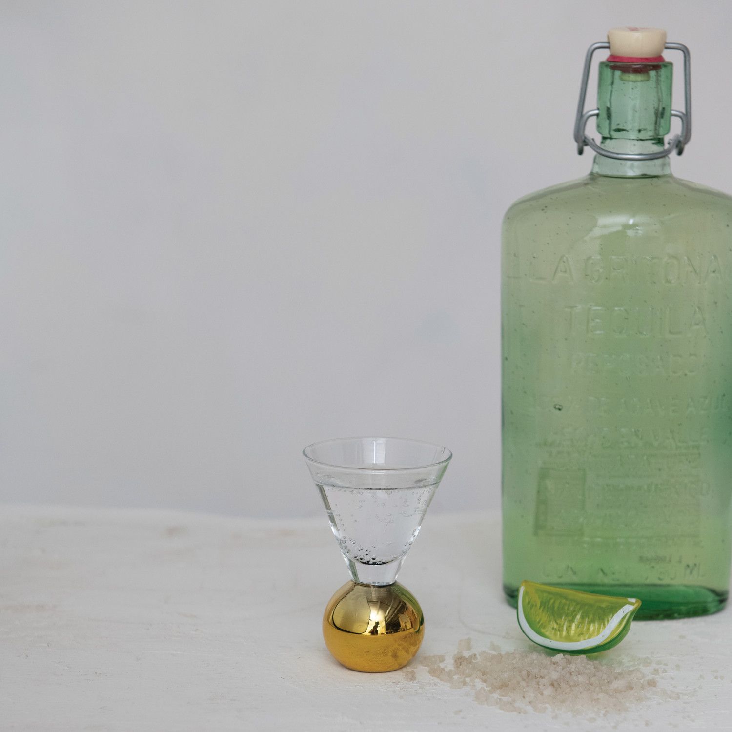 1 oz. Shot Glass w/ Gold Electroplated Ball Stem
