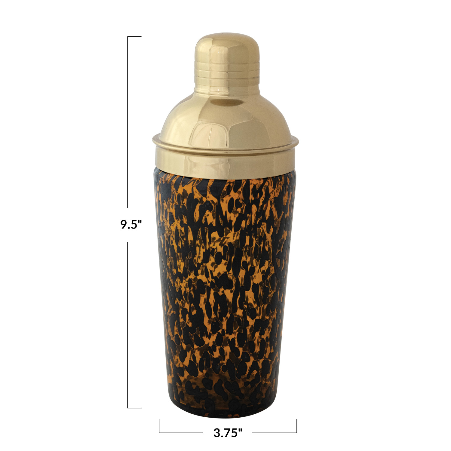Catalog Name: 3-3/4" Round x 9-1/2"H 20 oz. Confetti Glass Cocktail Shaker w/ Stainless Steel Top, Tortoise Shell & Gold Finish