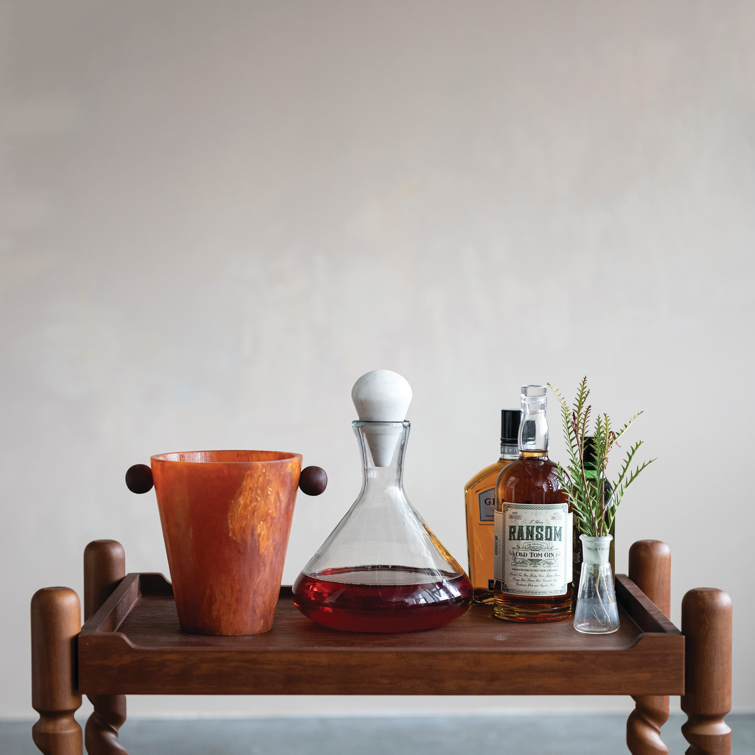 Marbled Resin Bottle Cooler with Ball Handles, Sienna Color & Brown (Each One Will Vary)