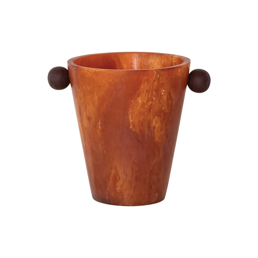 Catalog Name: 9-1/2"L x 6-1/2"W x 7-1/2"H Marbled Resin Bottle Cooler w/ Ball Handles, Sienna Color & Brown (Each One Will Vary)
