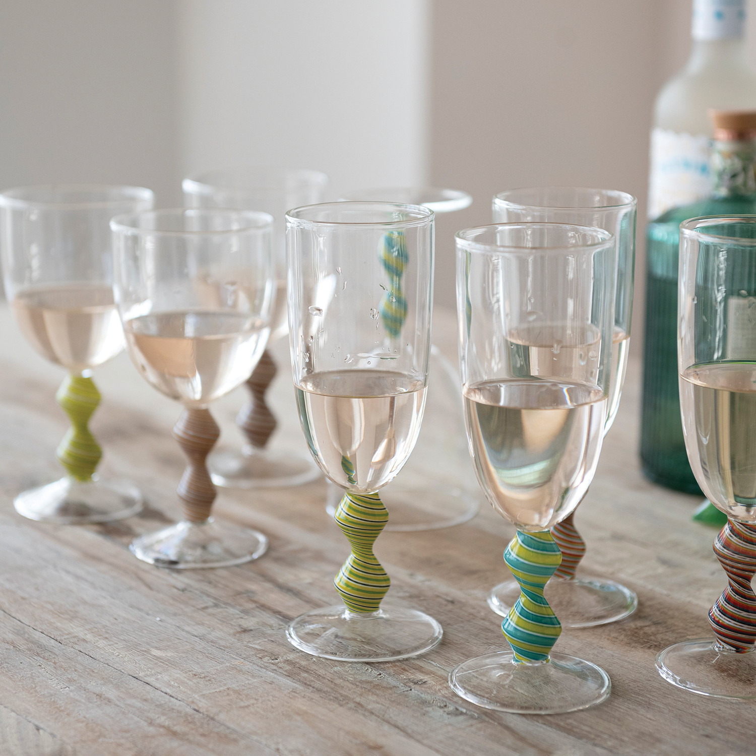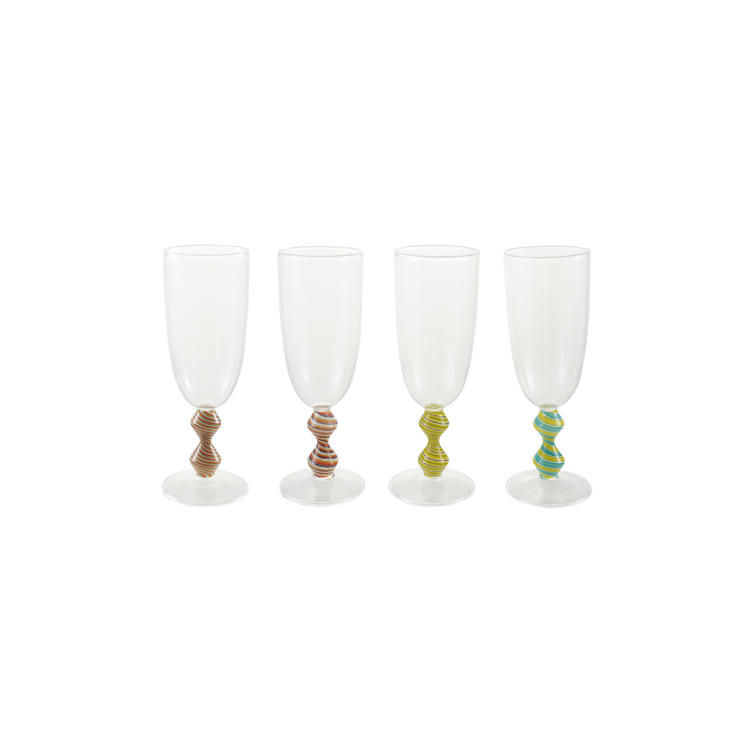 8 oz. Hand-Blown Glass Champagne Flute with Shaped & Striped Stem, 4 Colors
