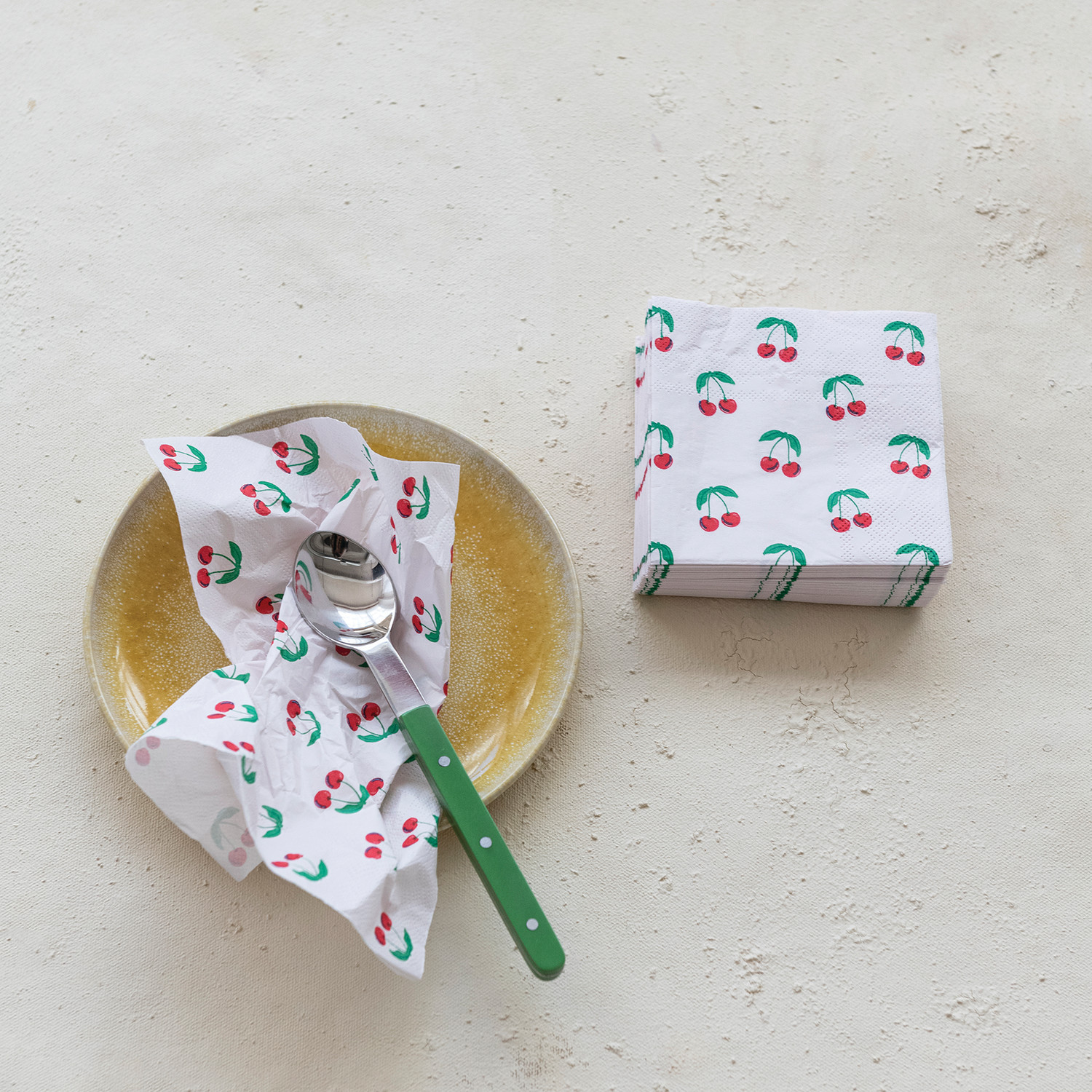 Paper Cocktail Napkins with Cherries, White (Contains 50 Folded Pieces)