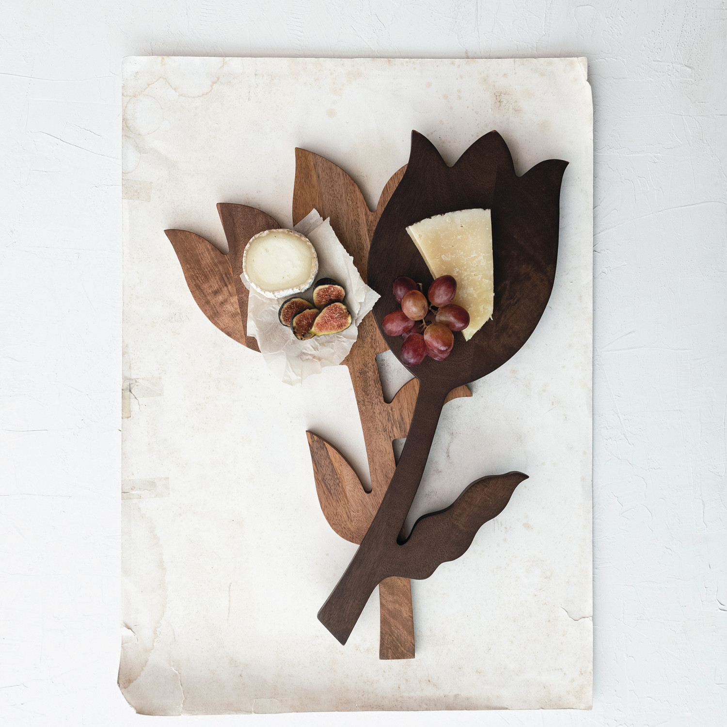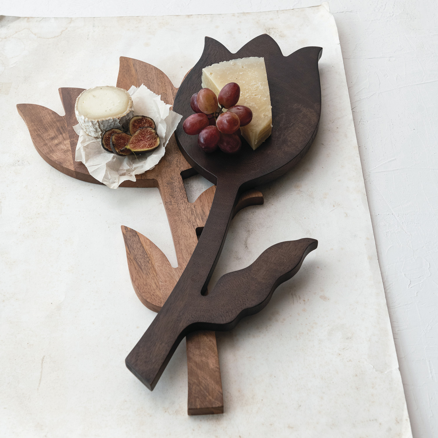 Mango Wood Flower Shaped Cheese/Cutting Board, Walnut Finish