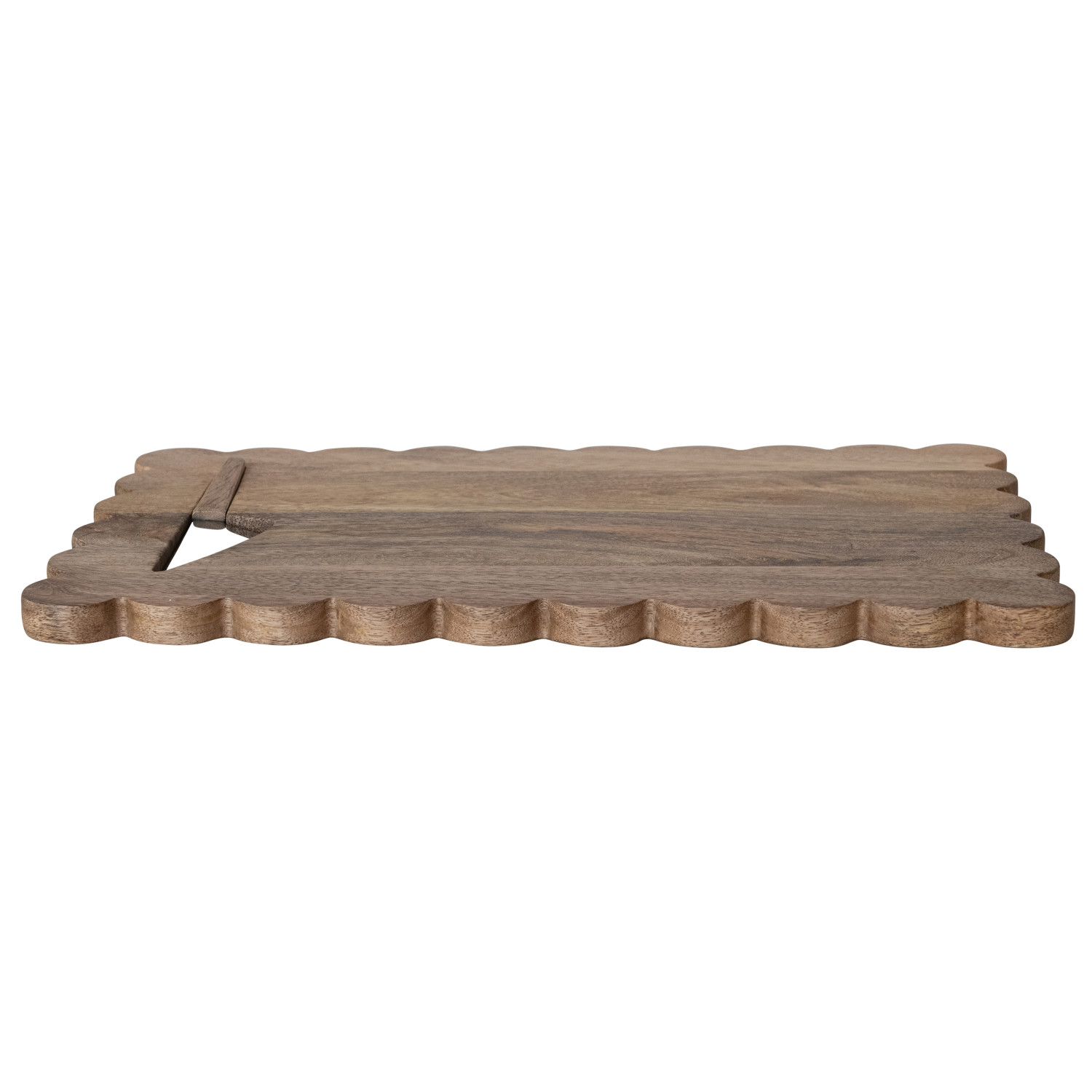 Catalog Name: 16"L x 10"W Mango Wood Scalloped Cheese/Serving Board w/ Inlaid 6-1/2"L Mango Wood & Stainless Steel Cheese Knife, Natural, Set of 2