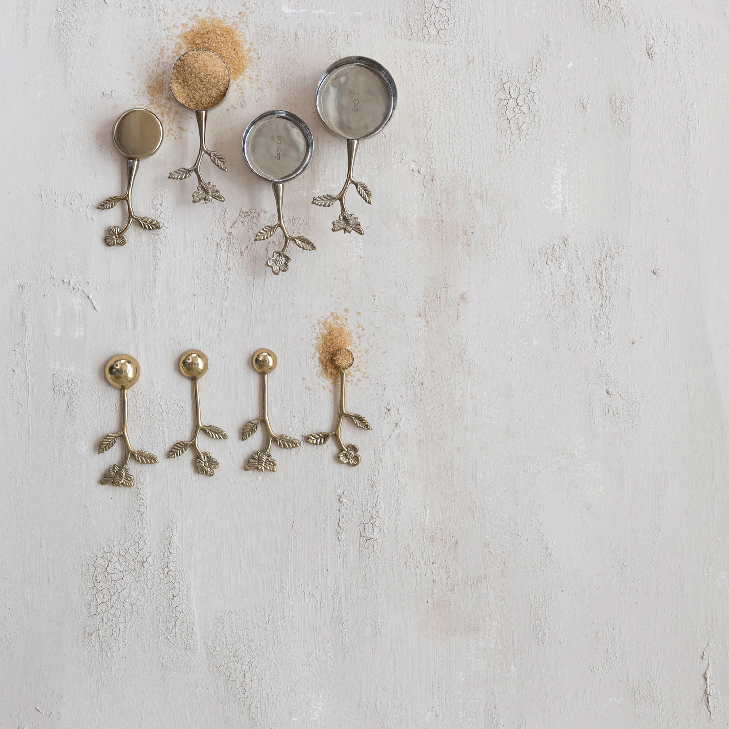 Cast Aluminum Measuring Spoons with Leaf & Flower Handles, Set of 4