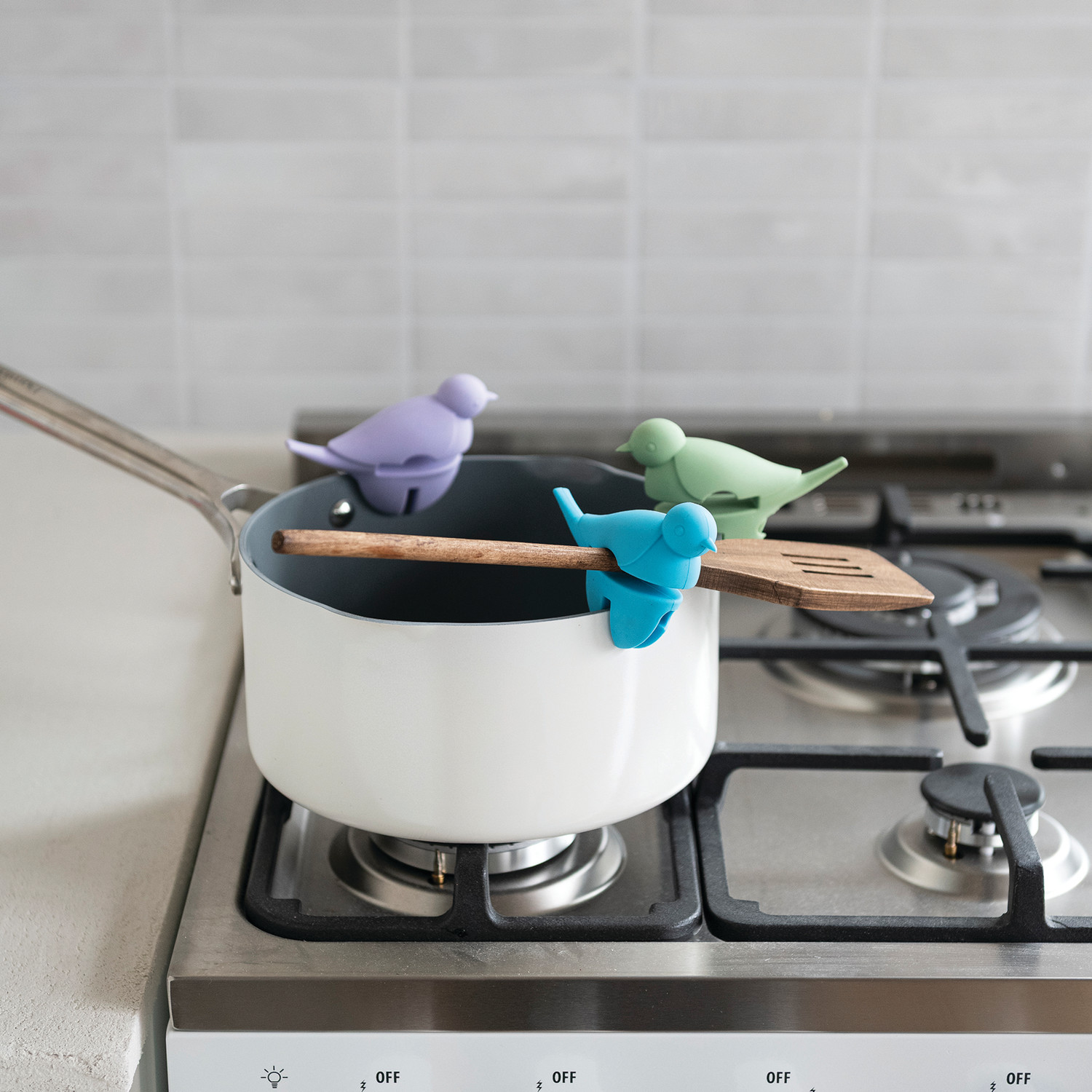 Silicone Bird Shaped Lid/Spoon Holder, 3 Colors