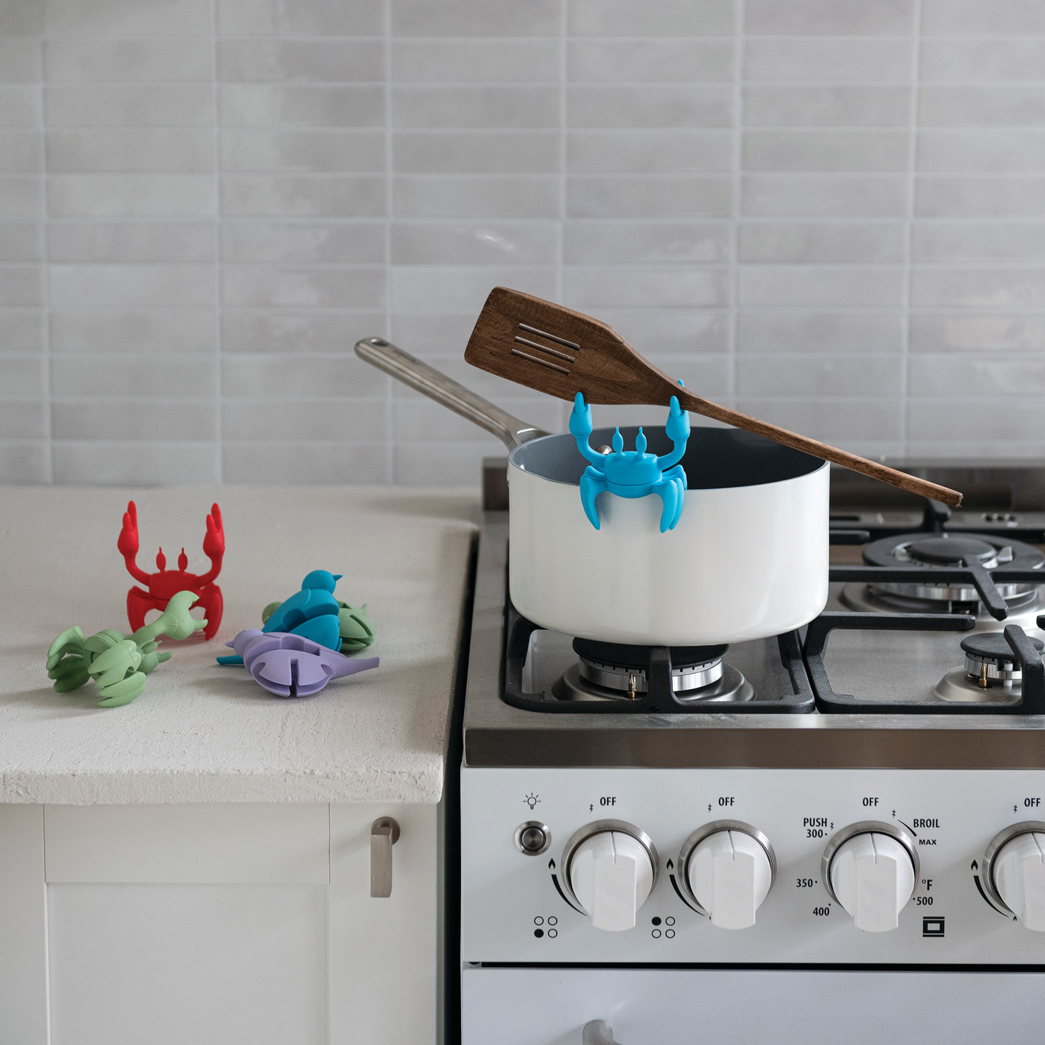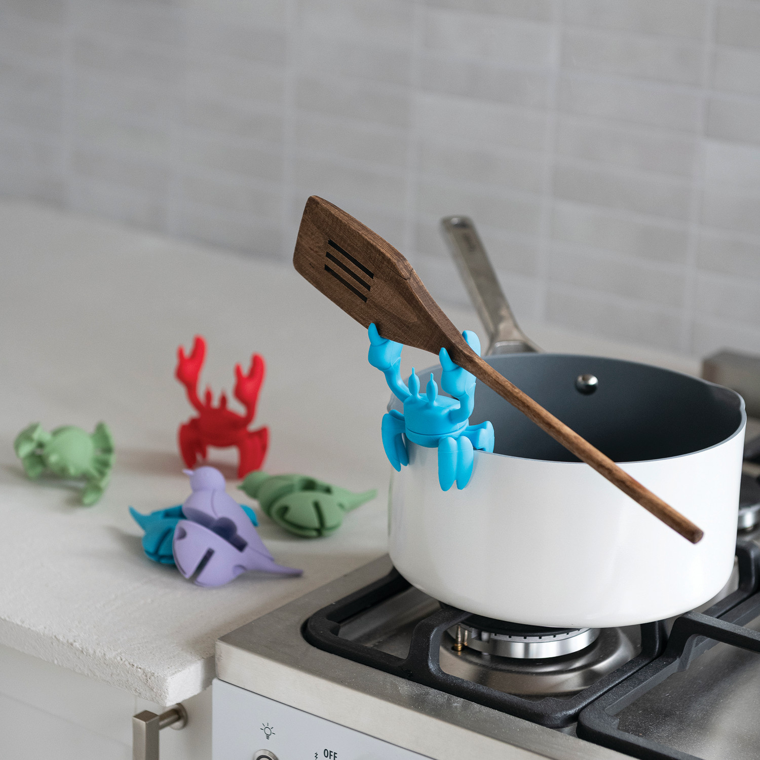 Silicone Crab Shaped Lid/Spoon Holder, 3 Colors
