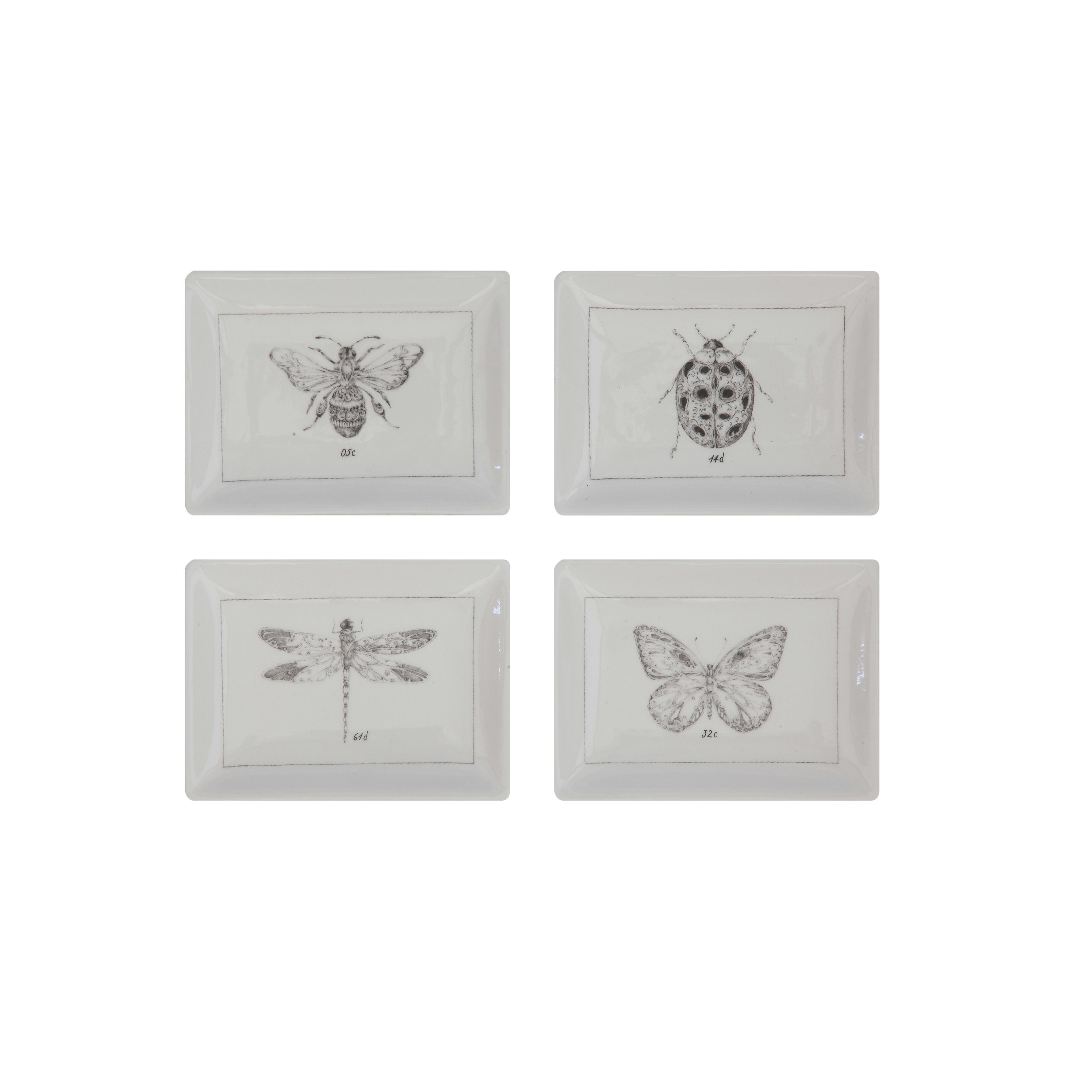 Catalog Name: 4"L x 3"W Ceramic Dish w/ Insect, White & Charcoal Color, 4 Styles ©