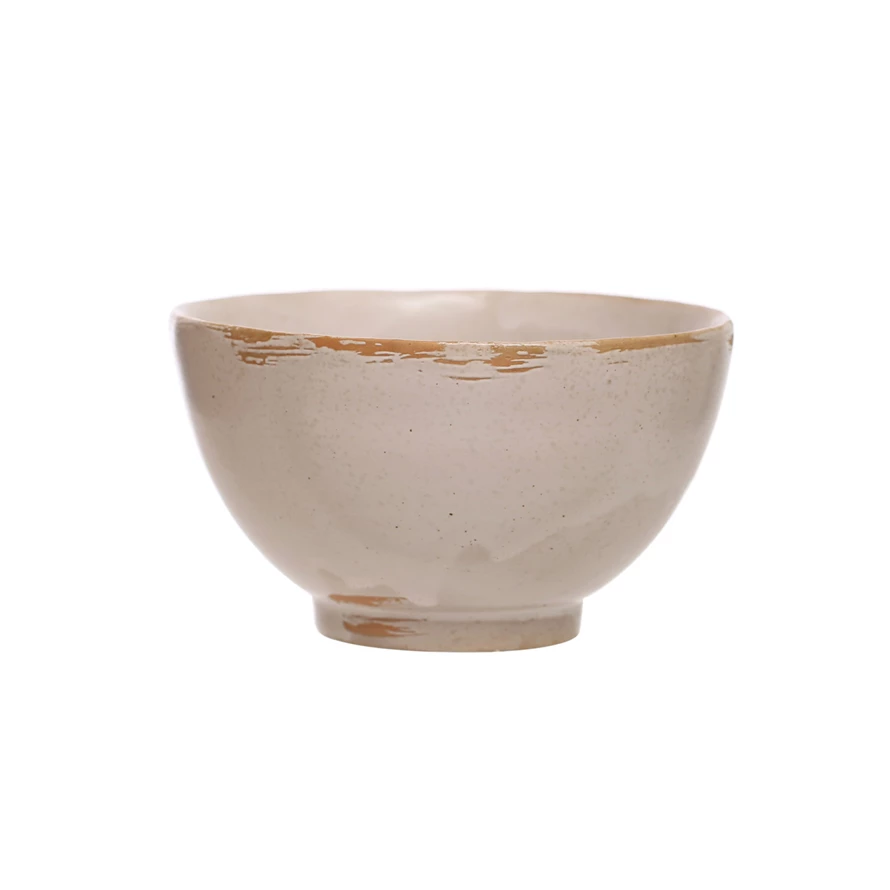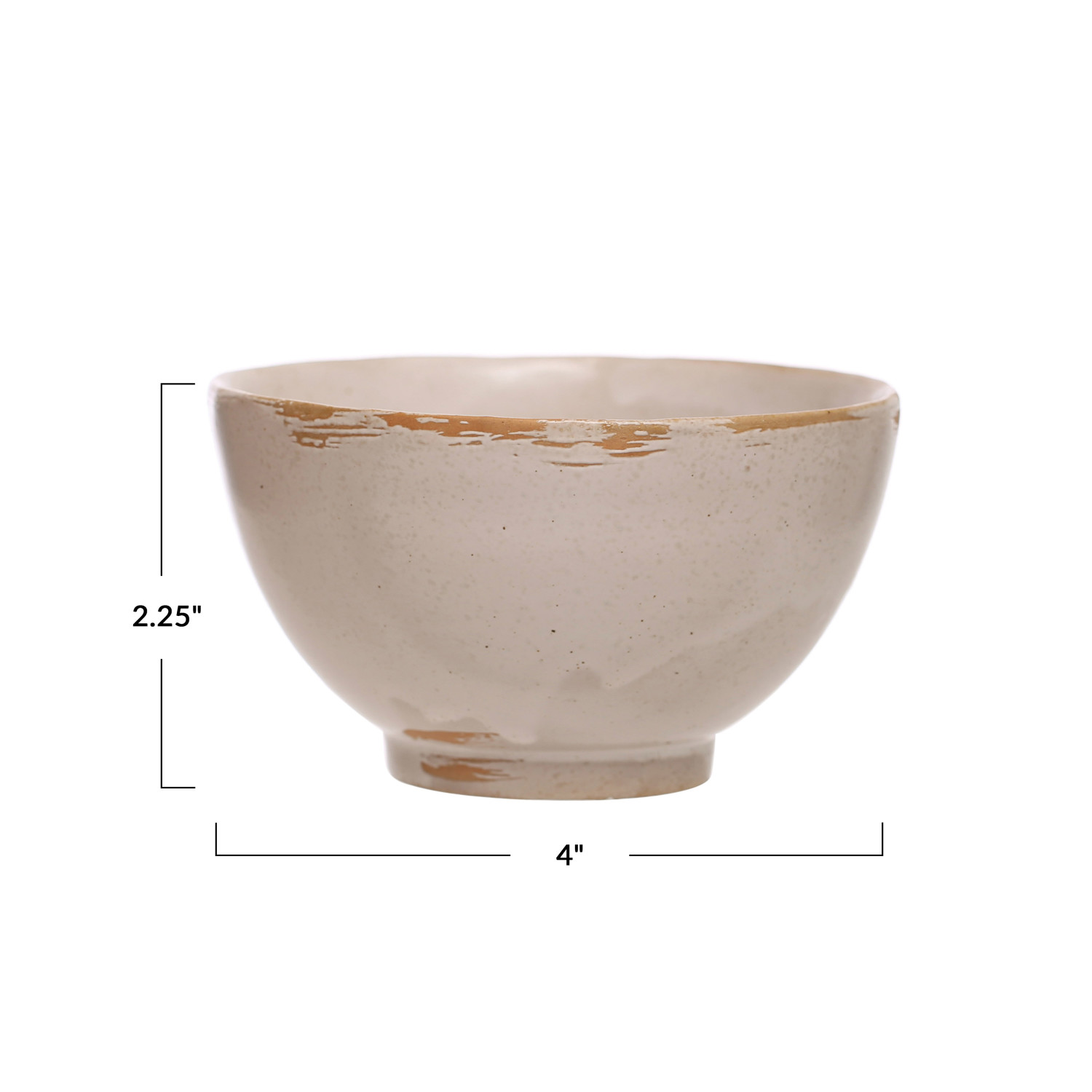 Catalog Name: 4" Round x 2-1/4"H Stoneware Bowl, Reactive Glaze, White (Each One Will Vary)