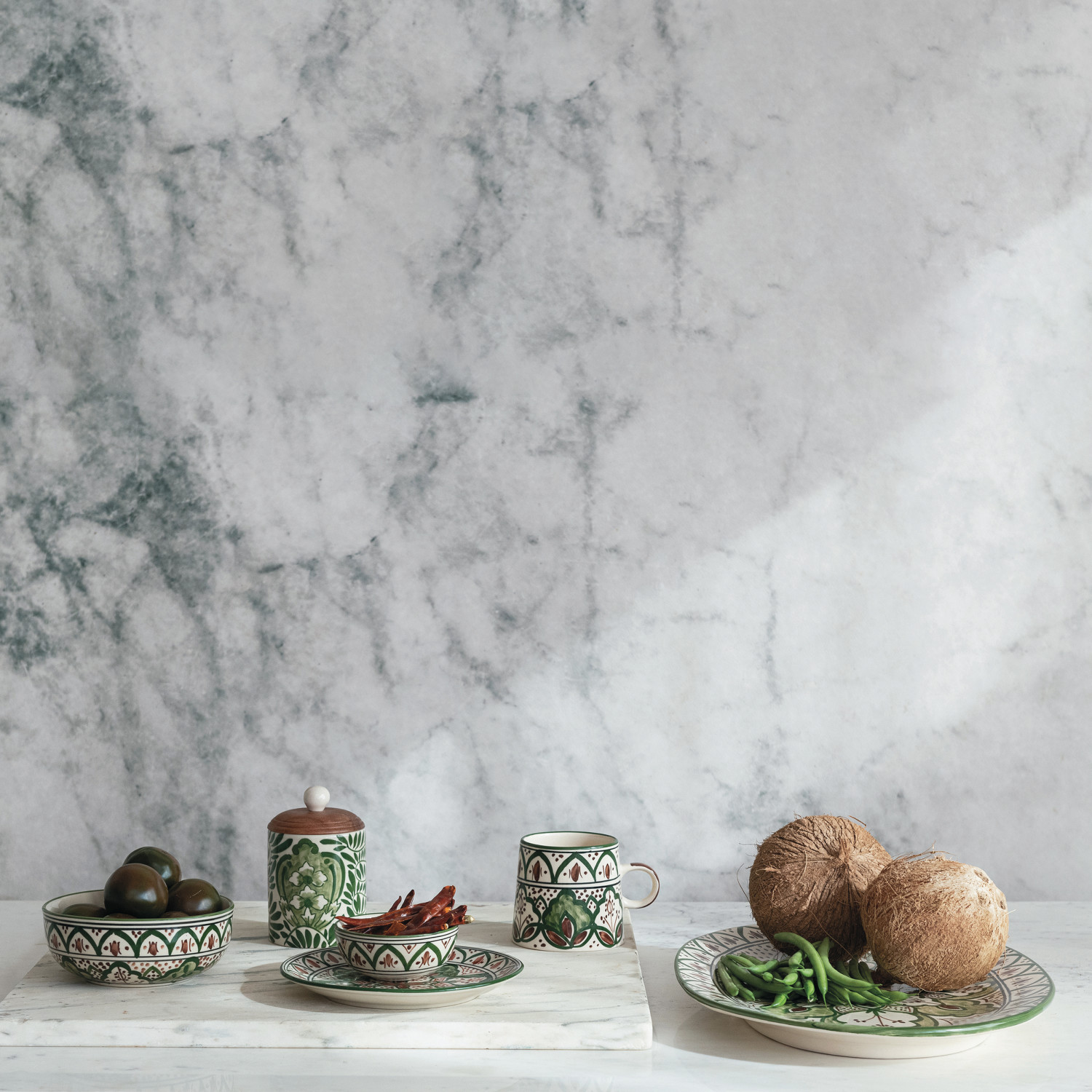 Hand-Painted Stoneware Bowl w/ Design, Cream Color, Brown & Green