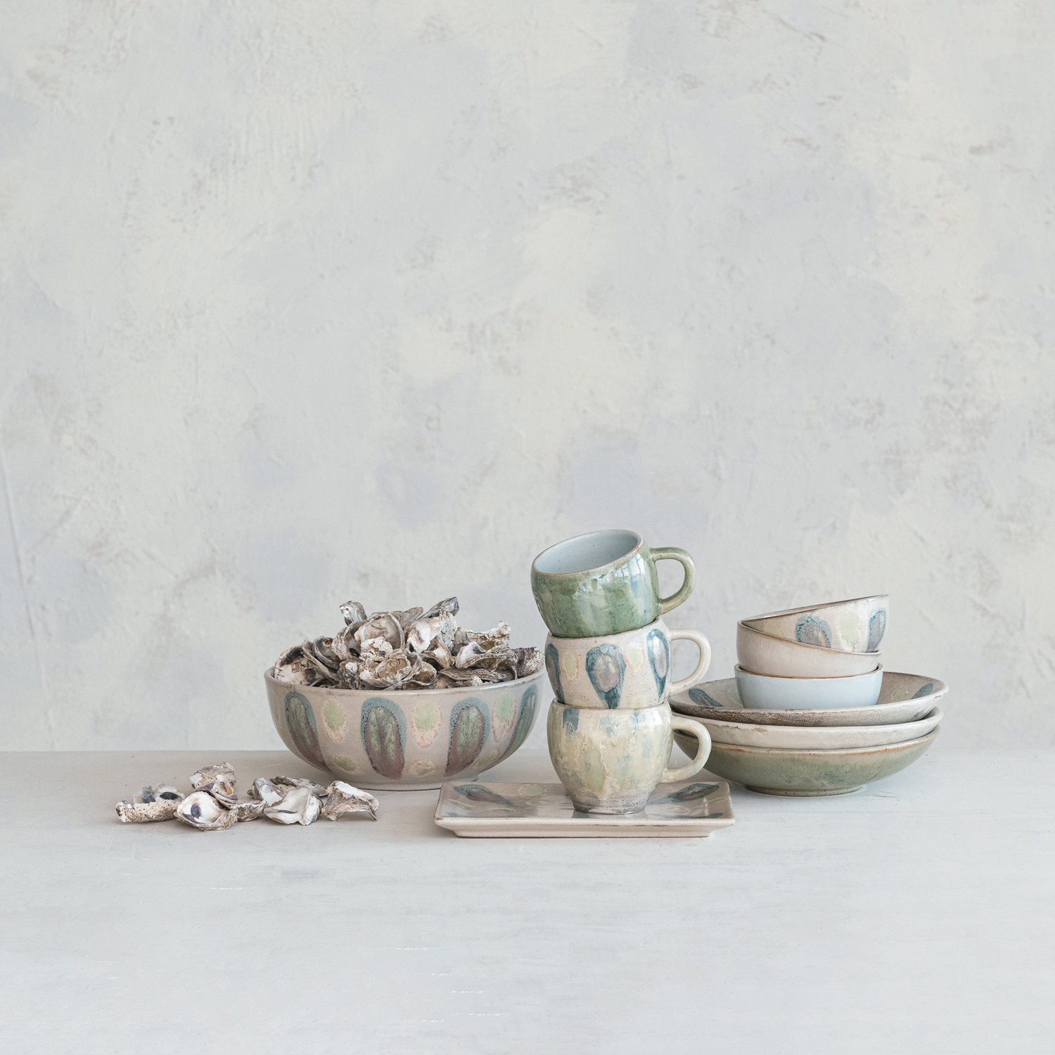 Catalog Name: 5" Round x 2-1/4"H Hand-Painted Stoneware Bowl, Reactive Glaze, Green, Blue & Cream Color, 3 Styles (Each One Will Vary)
