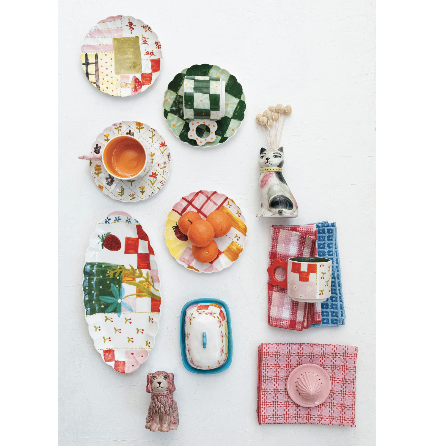 Catalog Name: 8" Round Hand-Painted Stoneware Scalloped Plate w/ Pattern, Multi Color, 4 Styles