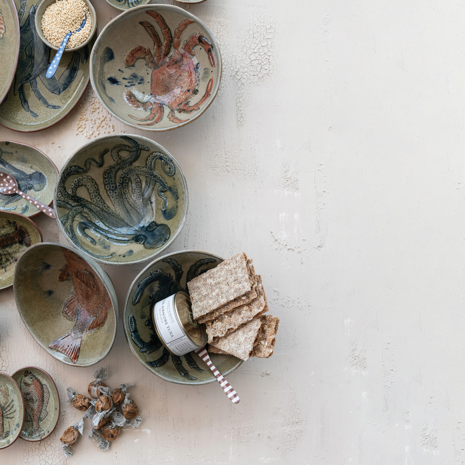 Hand-Painted Stoneware Bowl with Sea Life, 4 Styles (Each Varies)