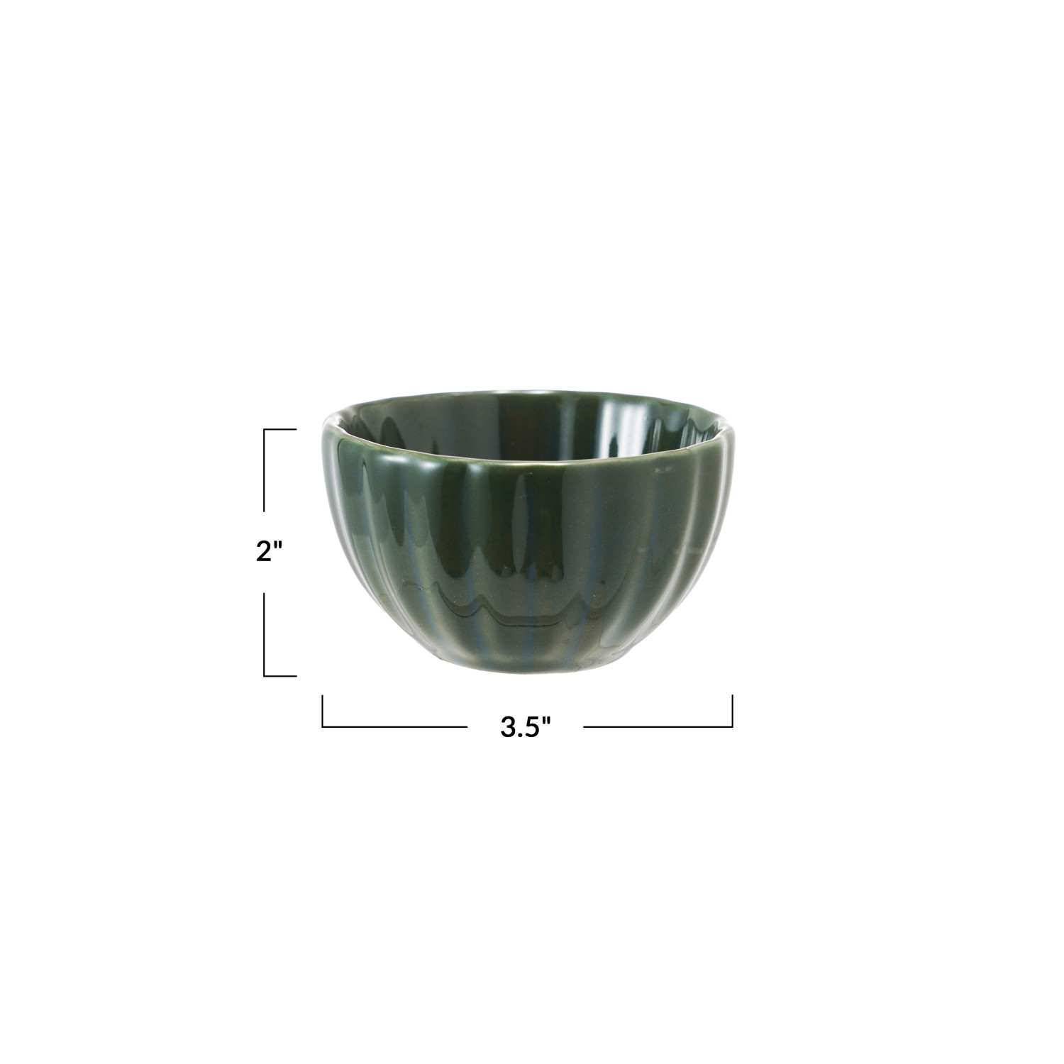 Catalog Name: 3-1/2" Round x 2"H Stoneware Ribbed Bowl, Reactive Glaze, Green (Each One Will Vary)