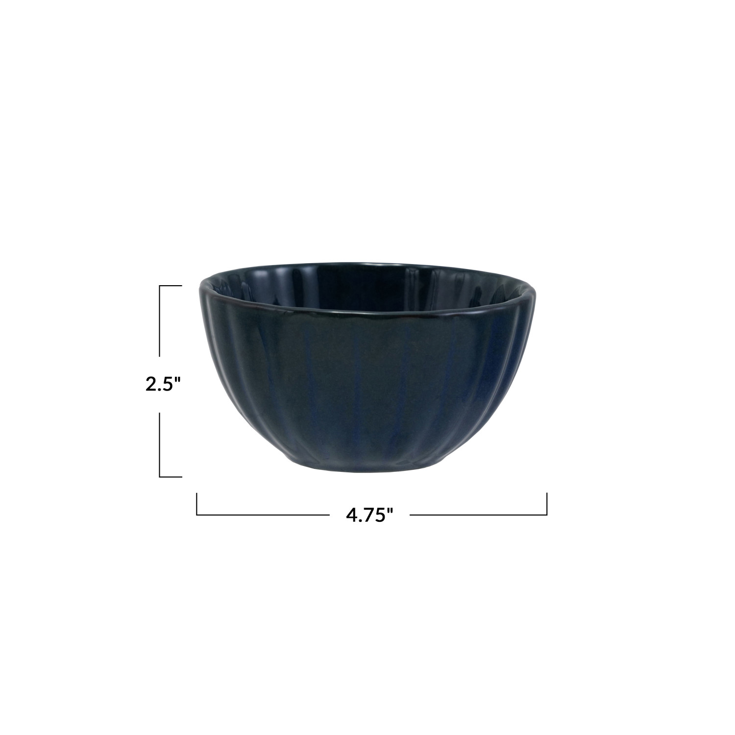Catalog Name: 4-3/4" Round x 2-1/2"H Stoneware Ribbed Bowl, Reactive Glaze, Blue (Each One Will Vary)
