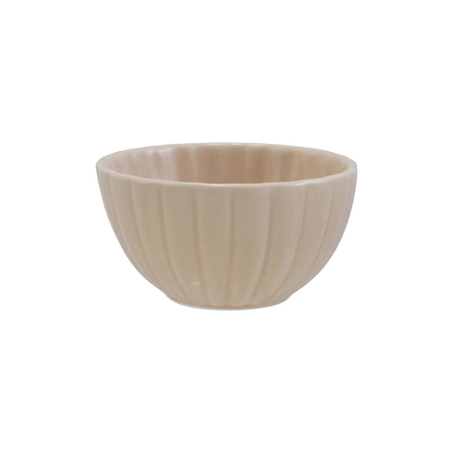 Catalog Name: 4-3/4" Round x 2-1/2"H Stoneware Ribbed Bowl, Reactive Glaze, Cream Color (Each One Will Vary)