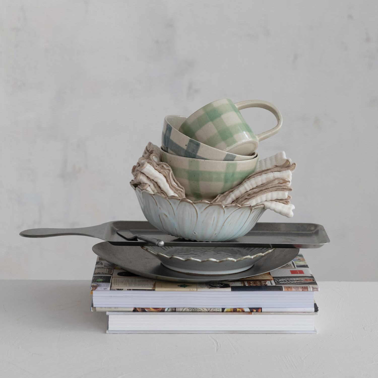Hand-Painted Stoneware Bowl w/ Grid Pattern, Reactive Glaze, 2 Colors (Each One Will Vary)