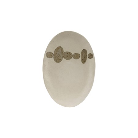 Catalog Name: 4" Round x 1-3/4"H Hand-Painted Stoneware Bowl w/ Pattern & Botanical Inside, Cream Color & Dark Green, 4 Styles (Each One Will Vary)