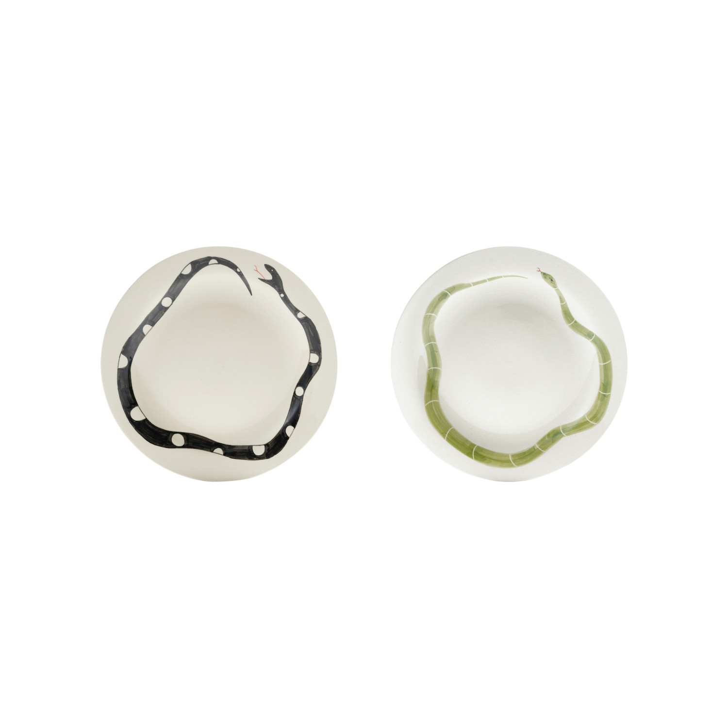 Hand-Painted Stoneware Plate with Snake, 2 Styles