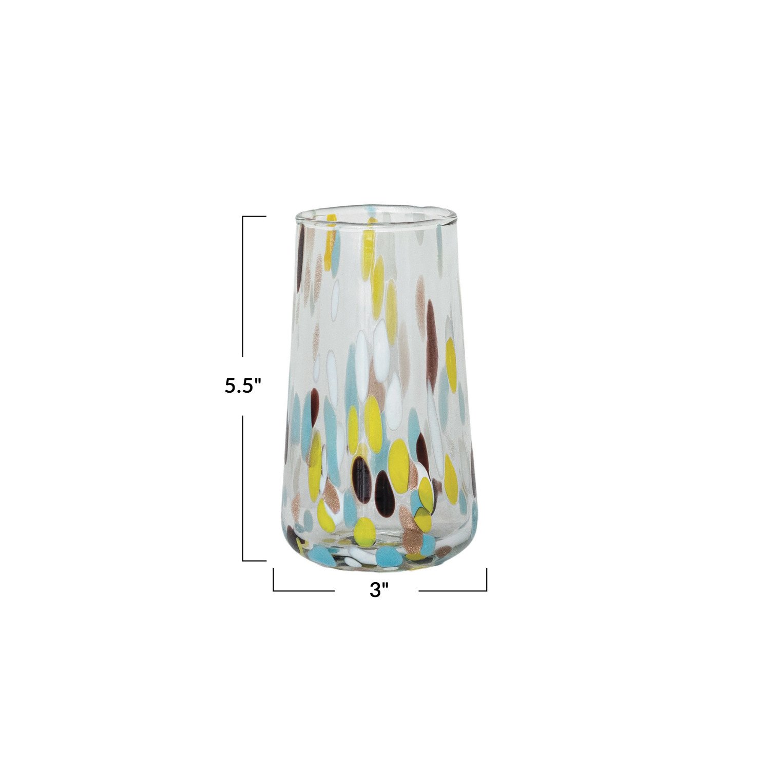Catalog Name: 3" Round x 5-1/2"H 12 oz. Hand-Blown Confetti Drinking Glass, Multi Color