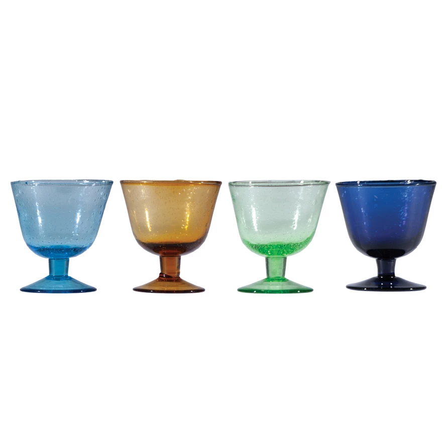 8 oz. Hand-Blown Stemmed Seeded Drinking Glass, 4 Colors