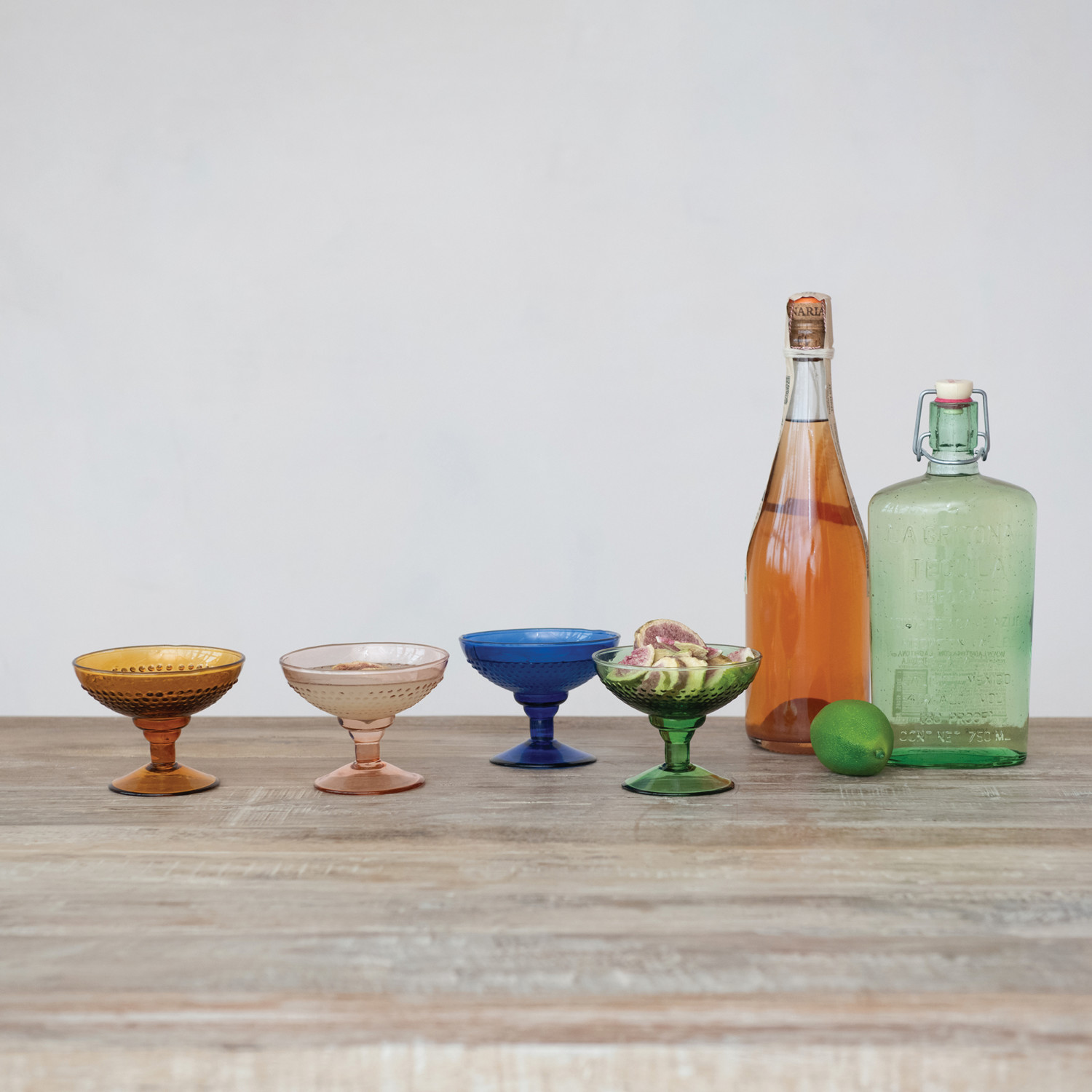 4 oz. Embossed Stemmed Coupe Glass, 4 Colors