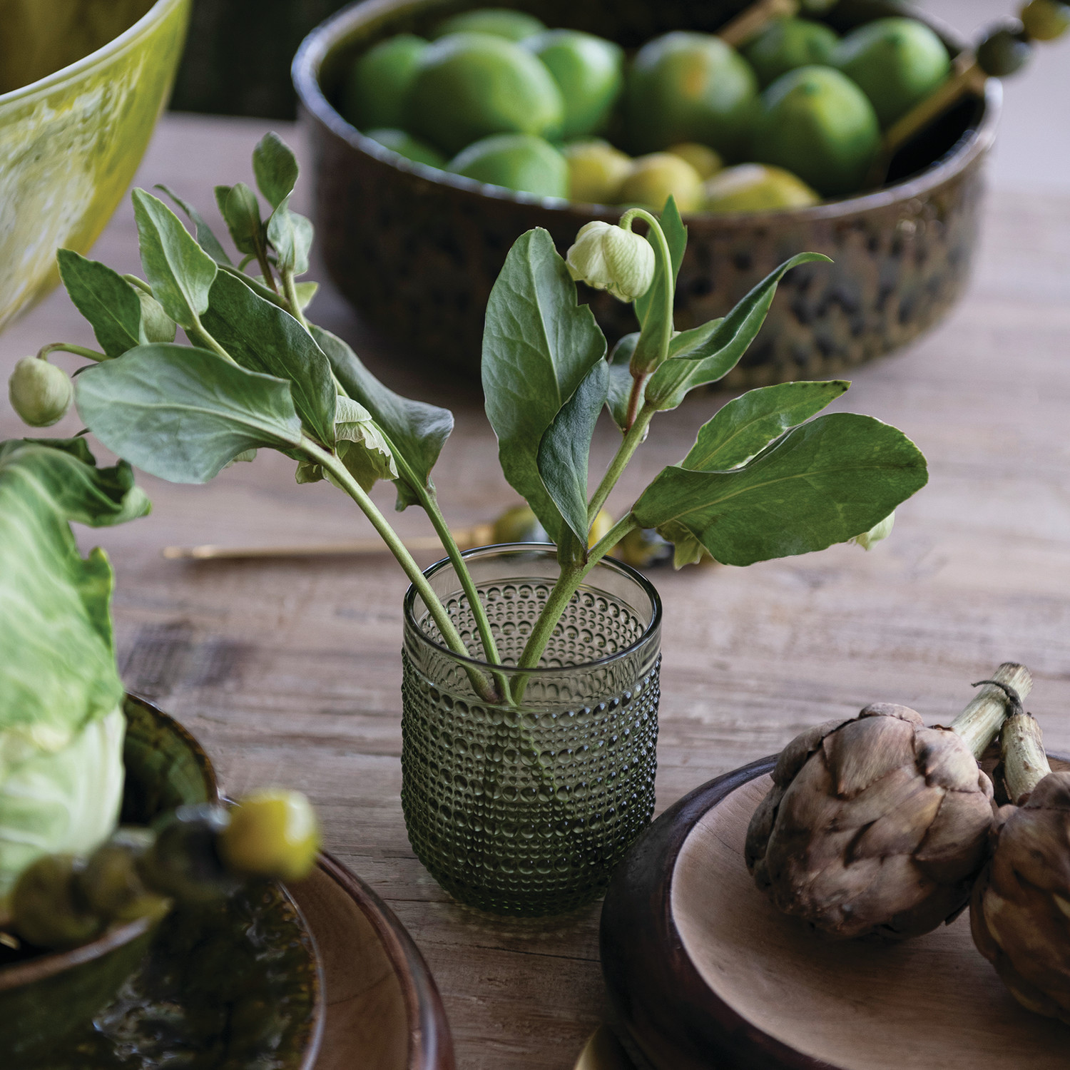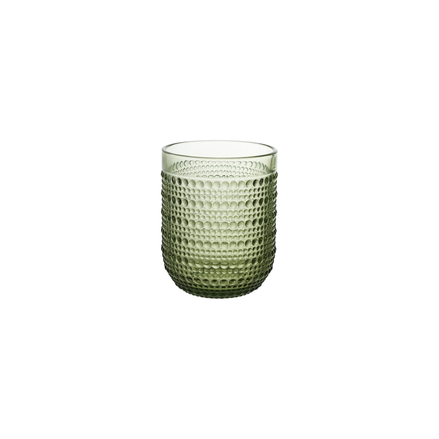 Catalog Name: 3" Round x 3-3/4"H 6 oz. Drinking Glass w/ Raised Dots, Green