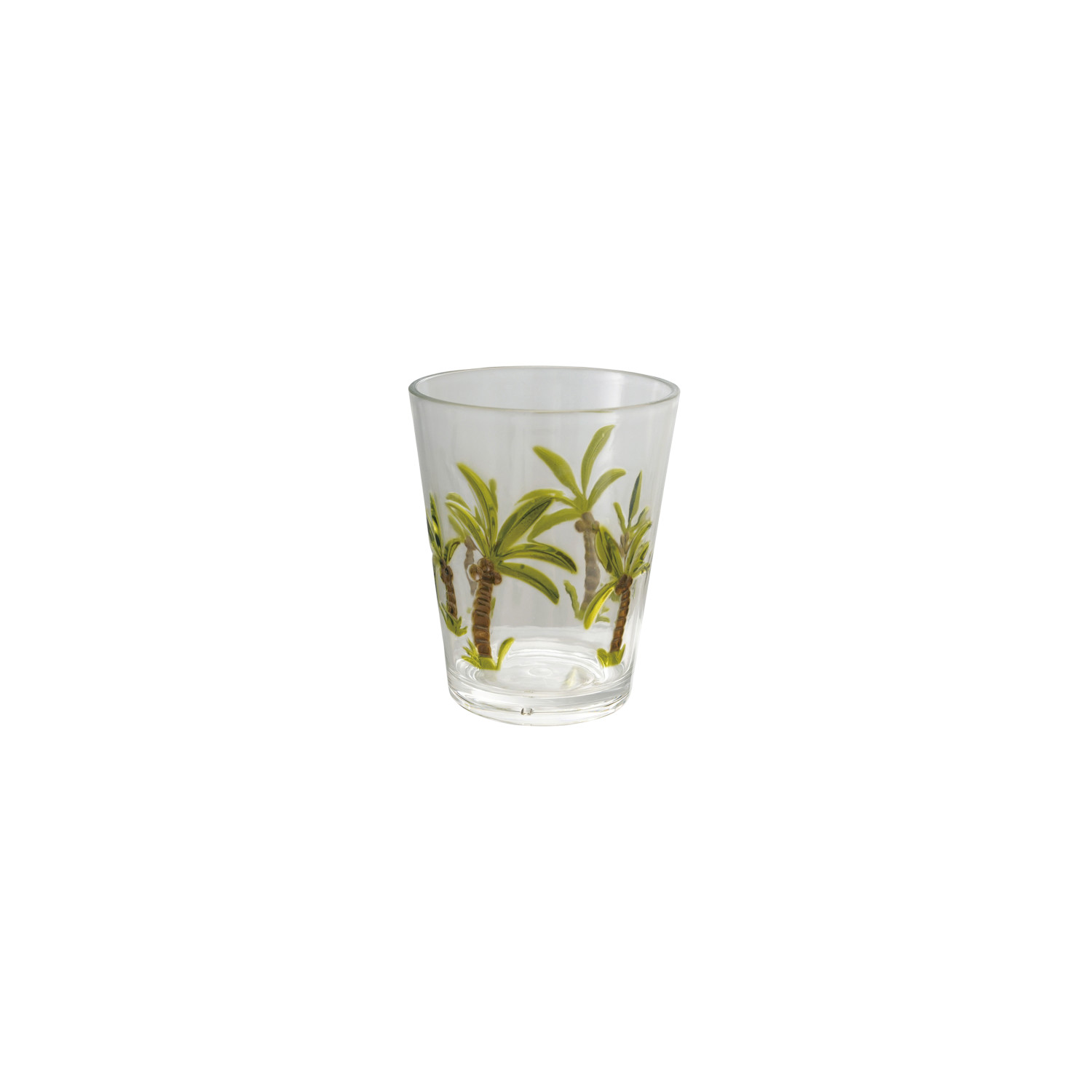 Catalog Name: 3-3/4" Round x 4-1/2"H 14 oz. Acrylic Drinking Glass w/ Palm Trees, Green & Brown