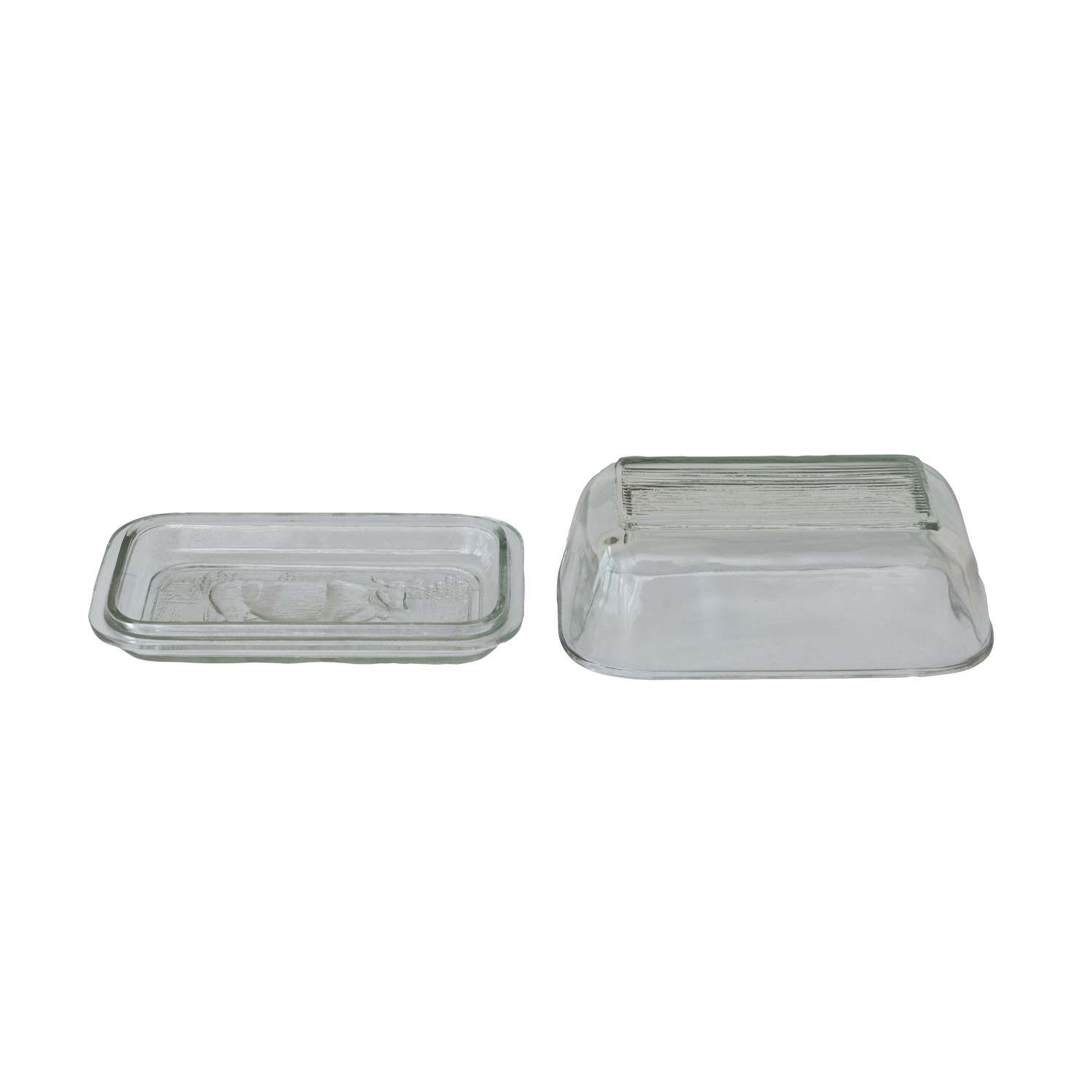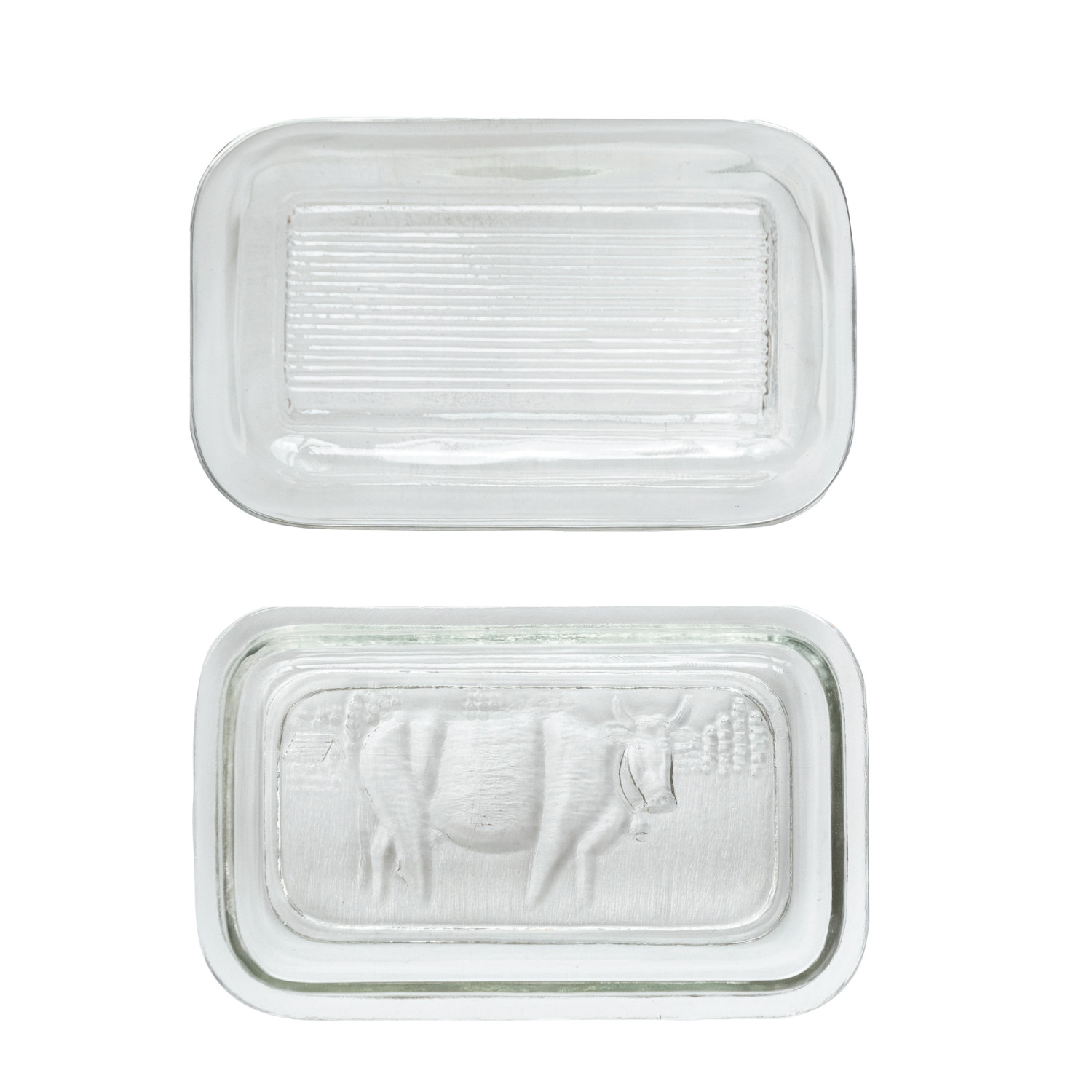 Catalog Name: 6-1/2"L x 4"W x 3"H Pressed Glass Butter Dish w/ Cow