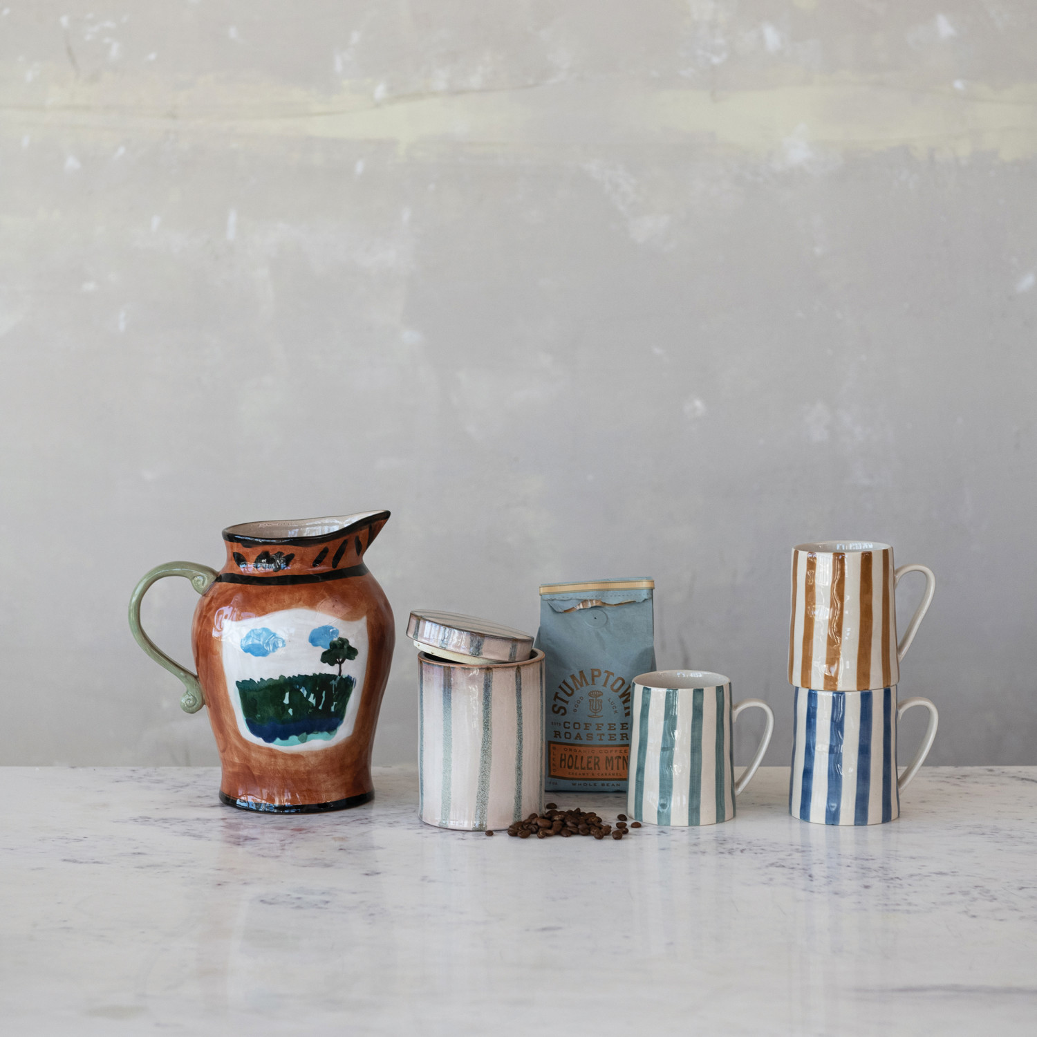 Hand-Painted Stoneware Striped Jar with Lid (Each Will Vary)