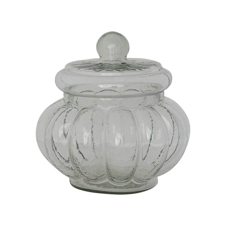Catalog Name: 6-1/4" Round x 6-1/4"H 3 Cup Ribbed Glass Jar w/ Lid