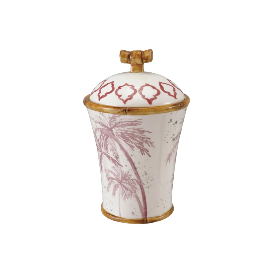 Hand-Painted Stoneware Canister with Palm Trees & Bamboo Style Edges