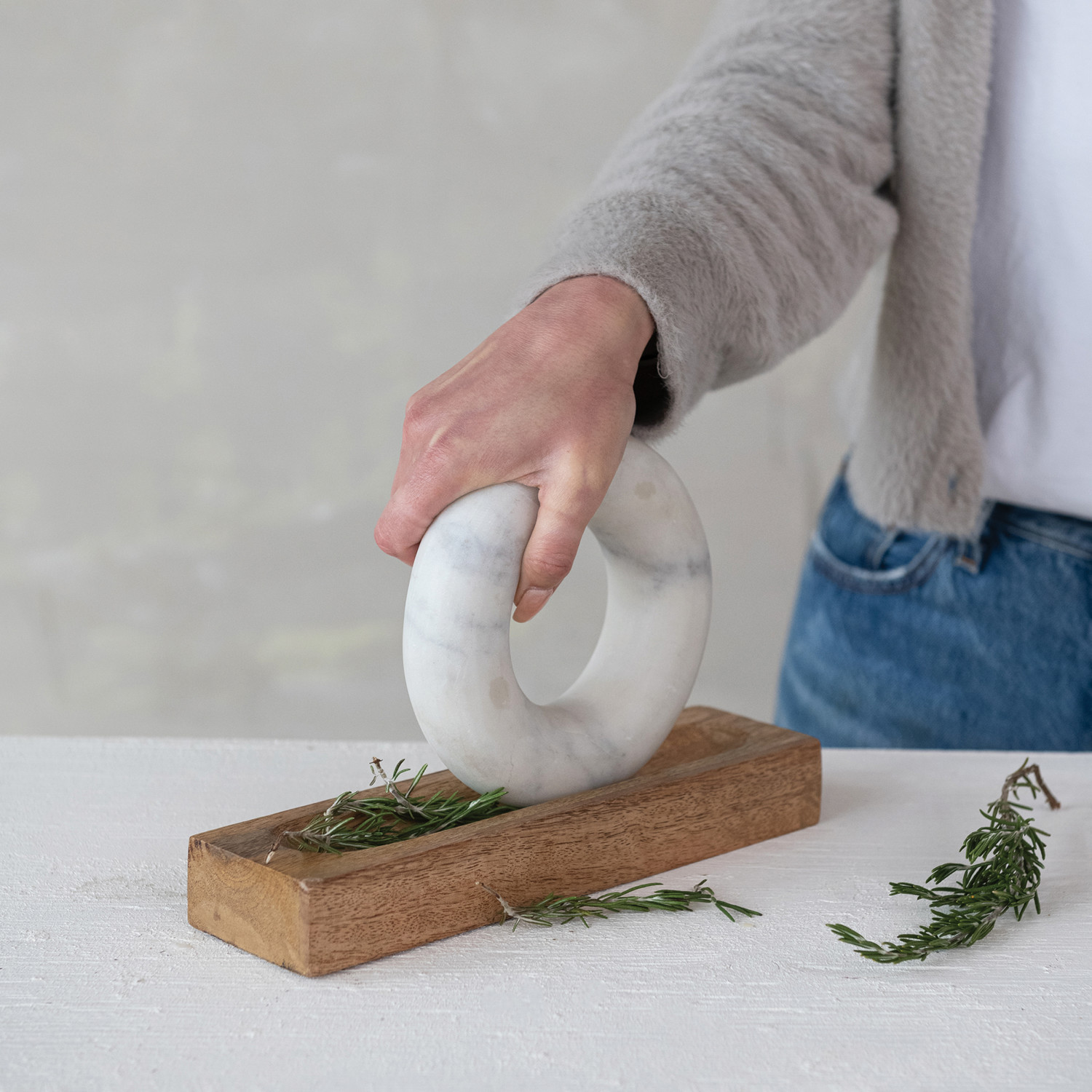 Mango Wood Mortar with Marble Ring Shaped Pestle, Boxed Set of 2