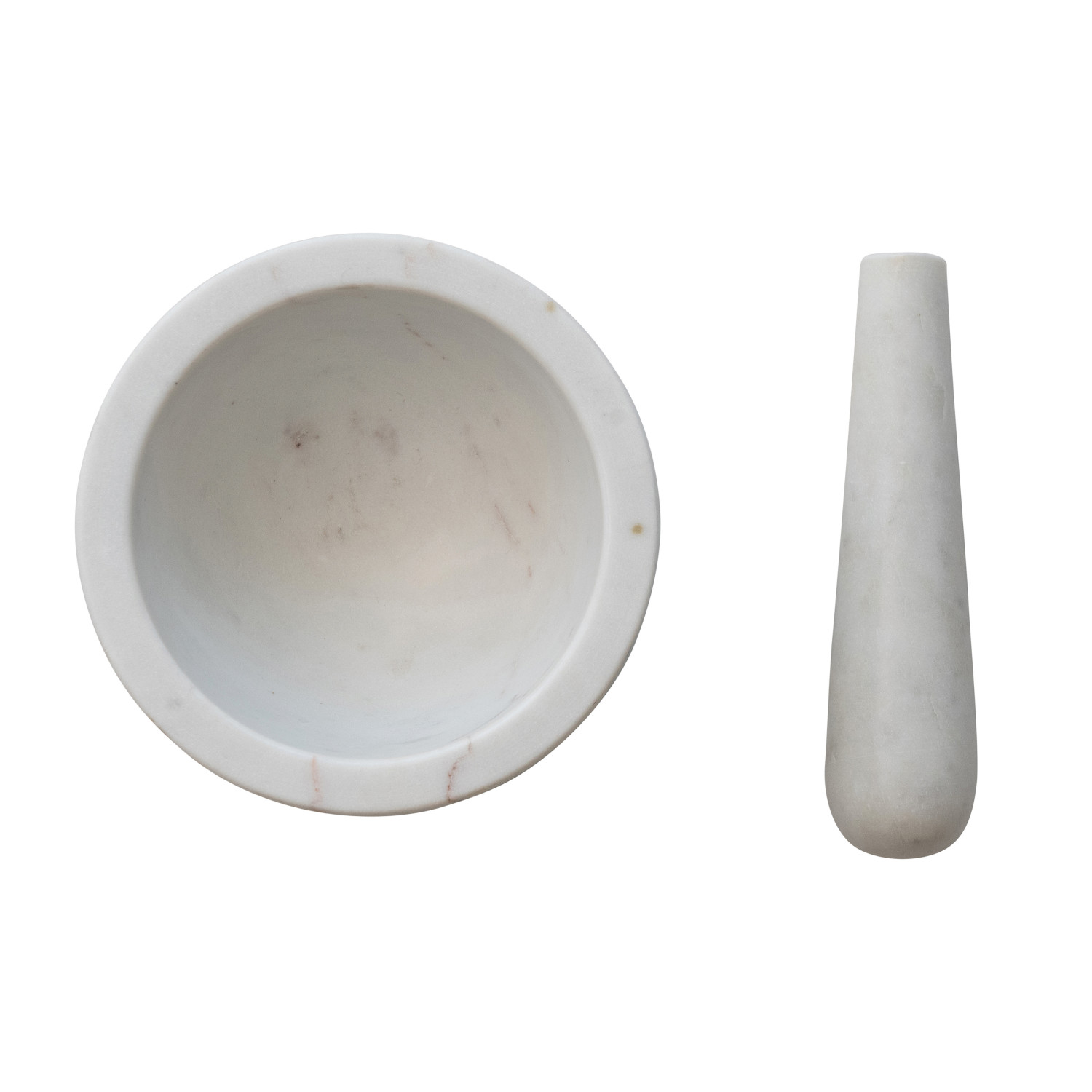 Catalog Name: 7" Round x 5"H Marble Mortar & Pestle, White, Set of 2