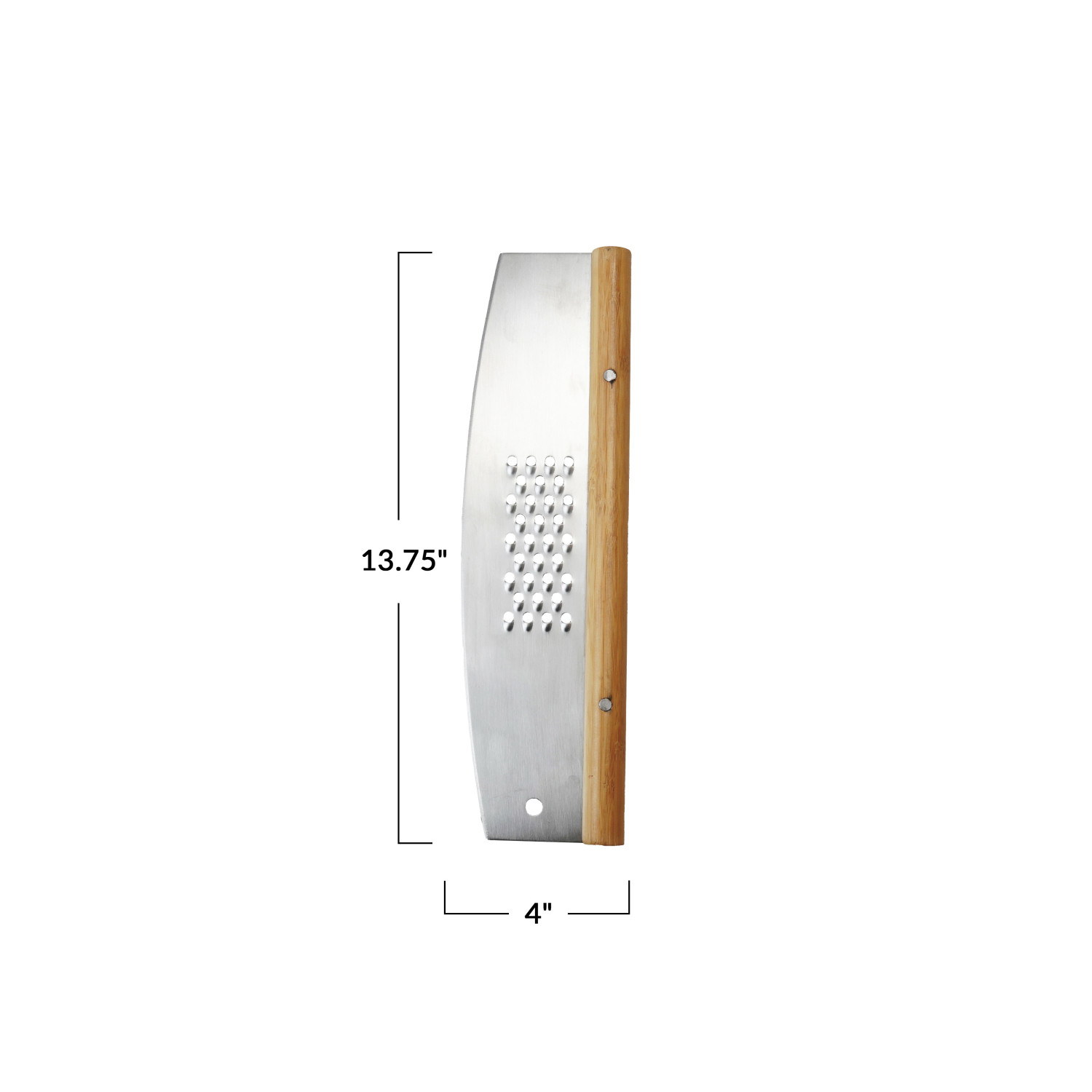 Catalog Name: 13-3/4"L x 4"W Stainless Steel & Rubberwood Pizza Cutter w/ Grater, Natural