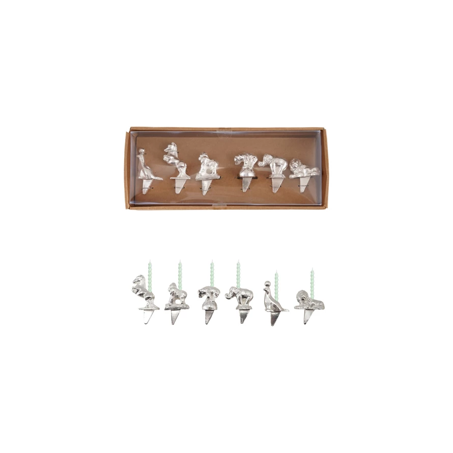 Zinc Alloy Circus Animal Birthday Cake Candle Holders, Boxed Set of 6