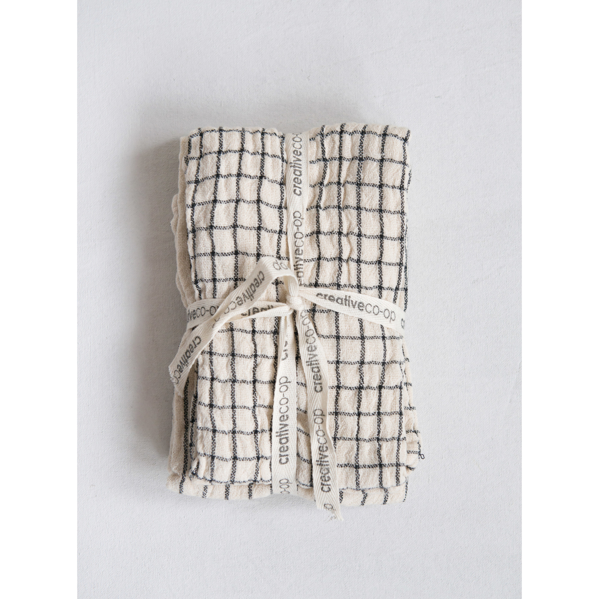 Catalog Name: 28"L x 18"W Cotton Tea Towel w/ Grid/Stripe Pattern Tied w/ Cotton Tape, Natural & Black, 2 Styles