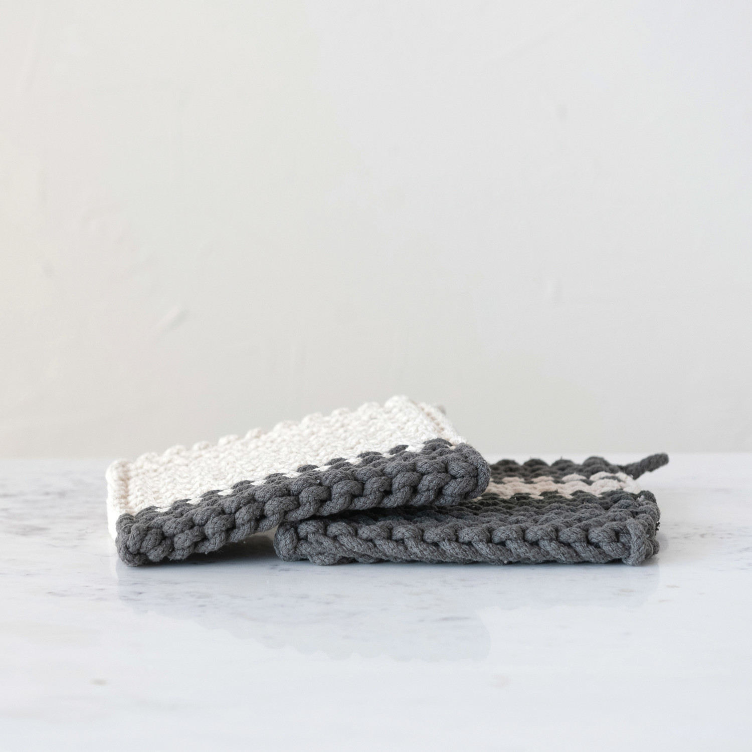 Catalog Name: 8" Square Cotton Crocheted Pot Holder, Charcoal & Cream Color, 2 Styles