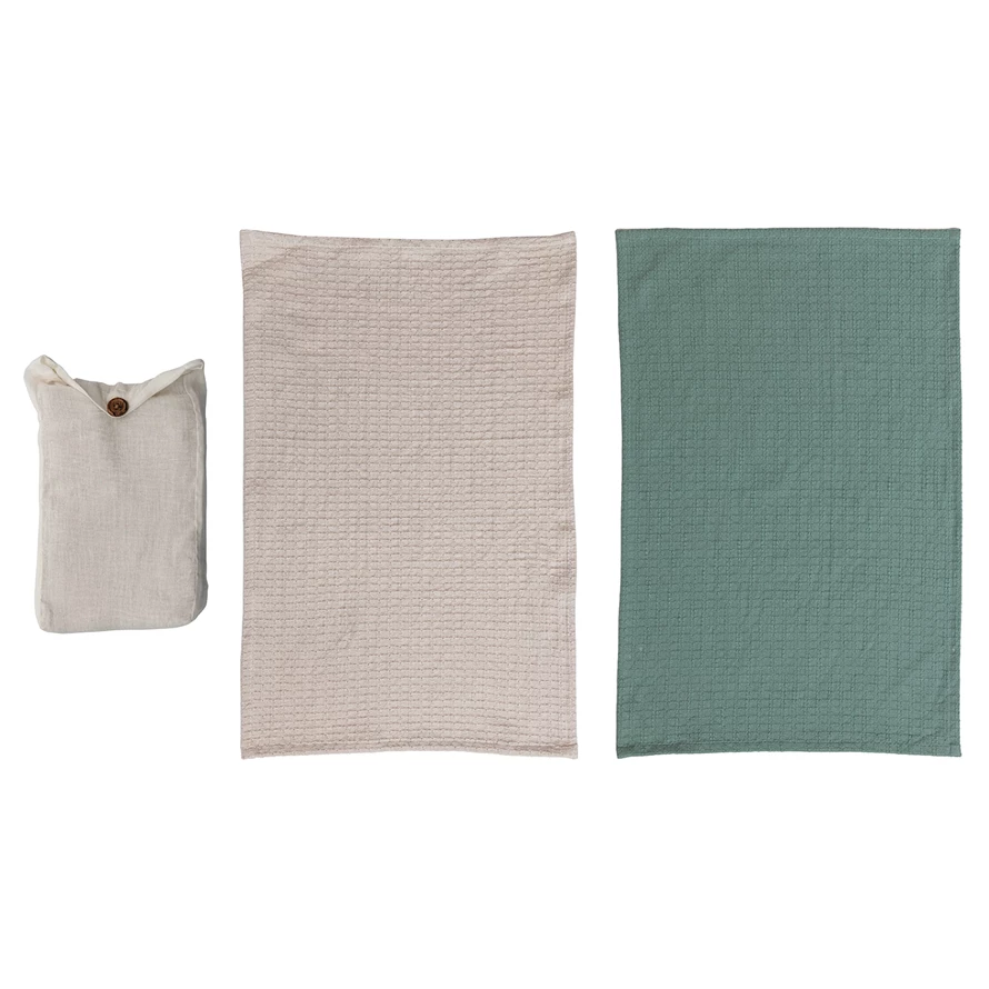 Catalog Name: 28"L x 18"W Cotton Waffle Weave Tea Towels, Teal & Natural, Set of 2 in Cotton Bag