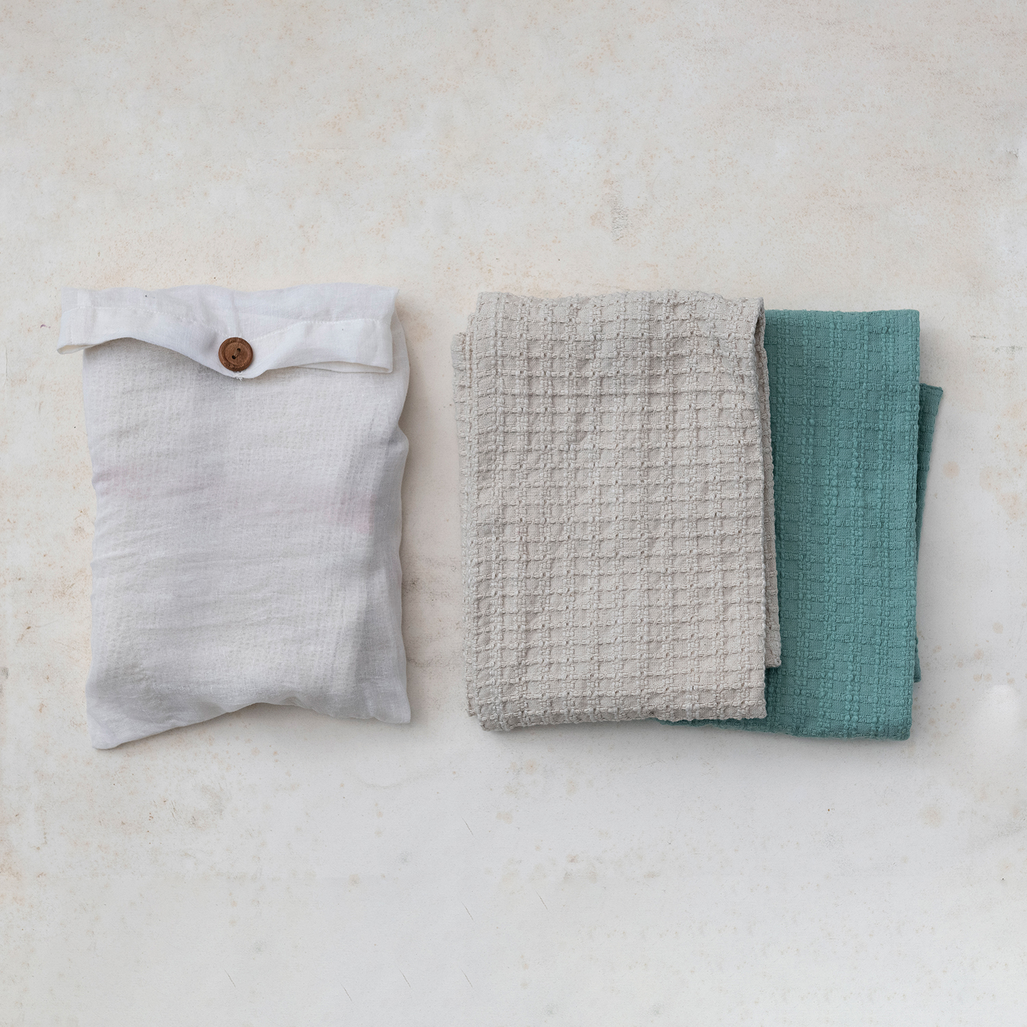 Cotton Waffle Weave Tea Towels, Set of 2 in Bag